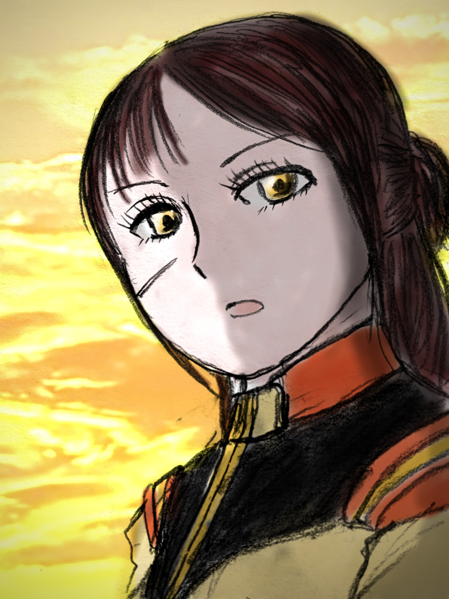 あの時、速報が入ったのを、訓練校の宿舎で、仲間のみんなと見たんです。覚えています。彼が、青ざめた顔でテレビを見ていたのを。その瞬間、彼は天涯孤独になったんです。家族も、生まれ育った故郷も、丸ごと、永遠に失ったのです。ショックでないはずはない。わたしも、もちろん、サイド5の自分の家族のことを心配しました。自分の出す声が、震えていたのを覚えています。でも、ジン・サナダの、想像しようにもしきれるはずがない、彼の悲しみを思って、声を掛けたんです。気をしっかり持て、と。