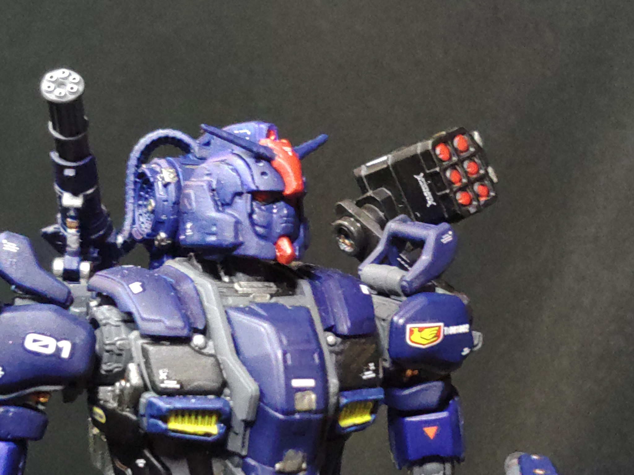 ショルダーガトリングは既存兵装ですが、三連ミサイルポットは改修により追加された装備。