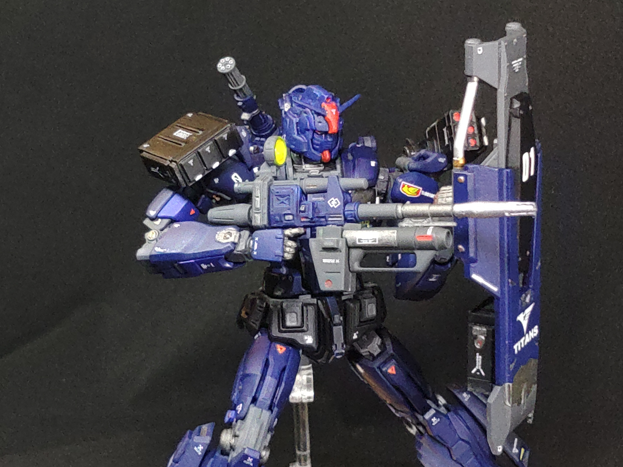 と言う訳でガンダムEXティターンズ仕様でした。いつもの手癖でティターンズカラーにしてみました。顔が悪役顔なので結構似合っている感じがします。