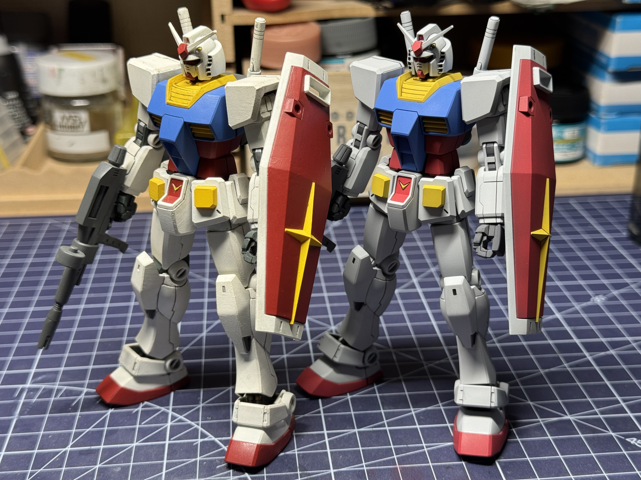 筆塗りとエアブラシ塗装の差を考えても、今回のガンダムの方がエッジに沿った陰影のつき方がシャープに見えますね。墨の入り方も全然違う...🙄