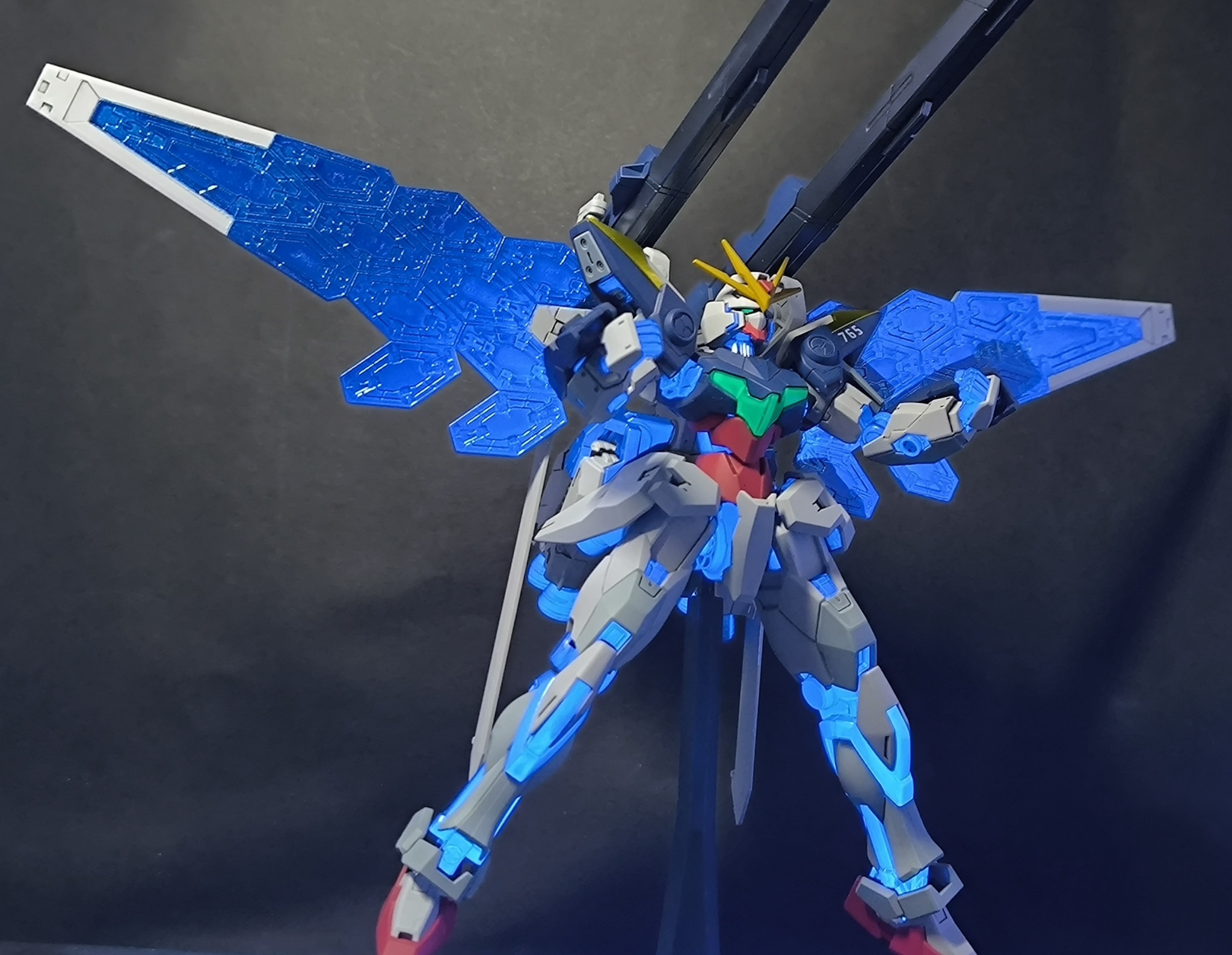 頭部アンテナをカミキバーニング、肩部をウイングゼロ、脚部をキャリバーンとEGストライクに変更