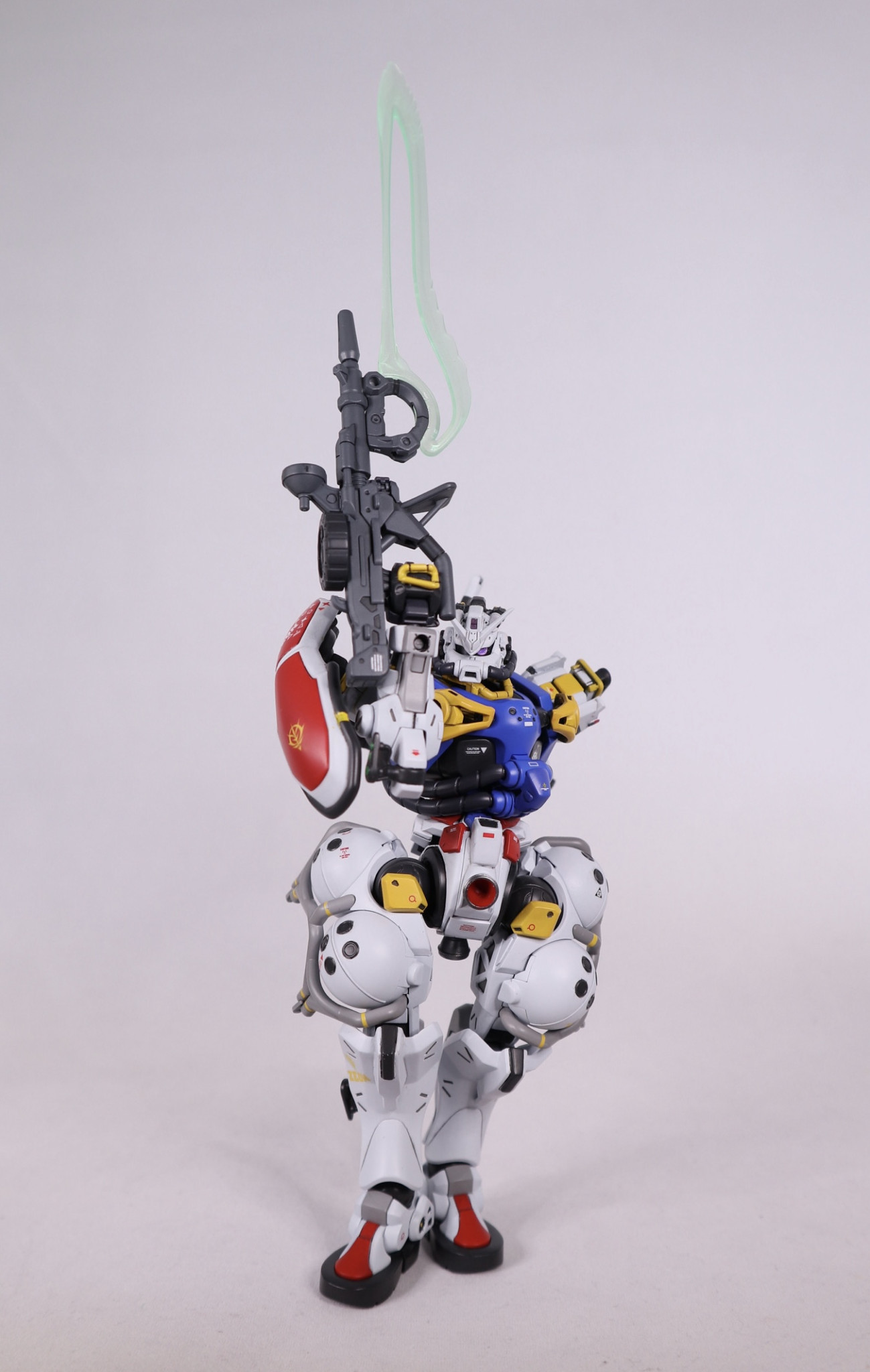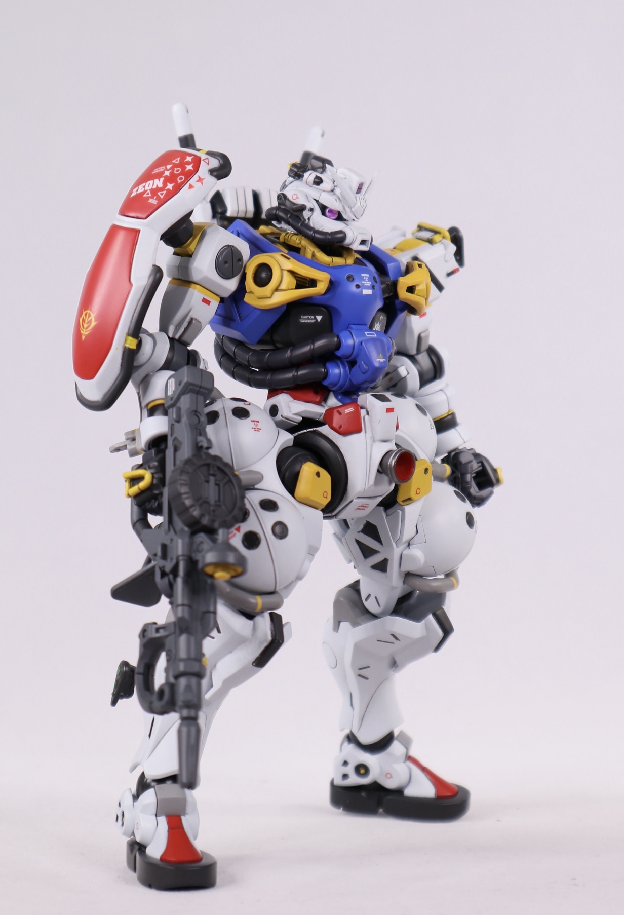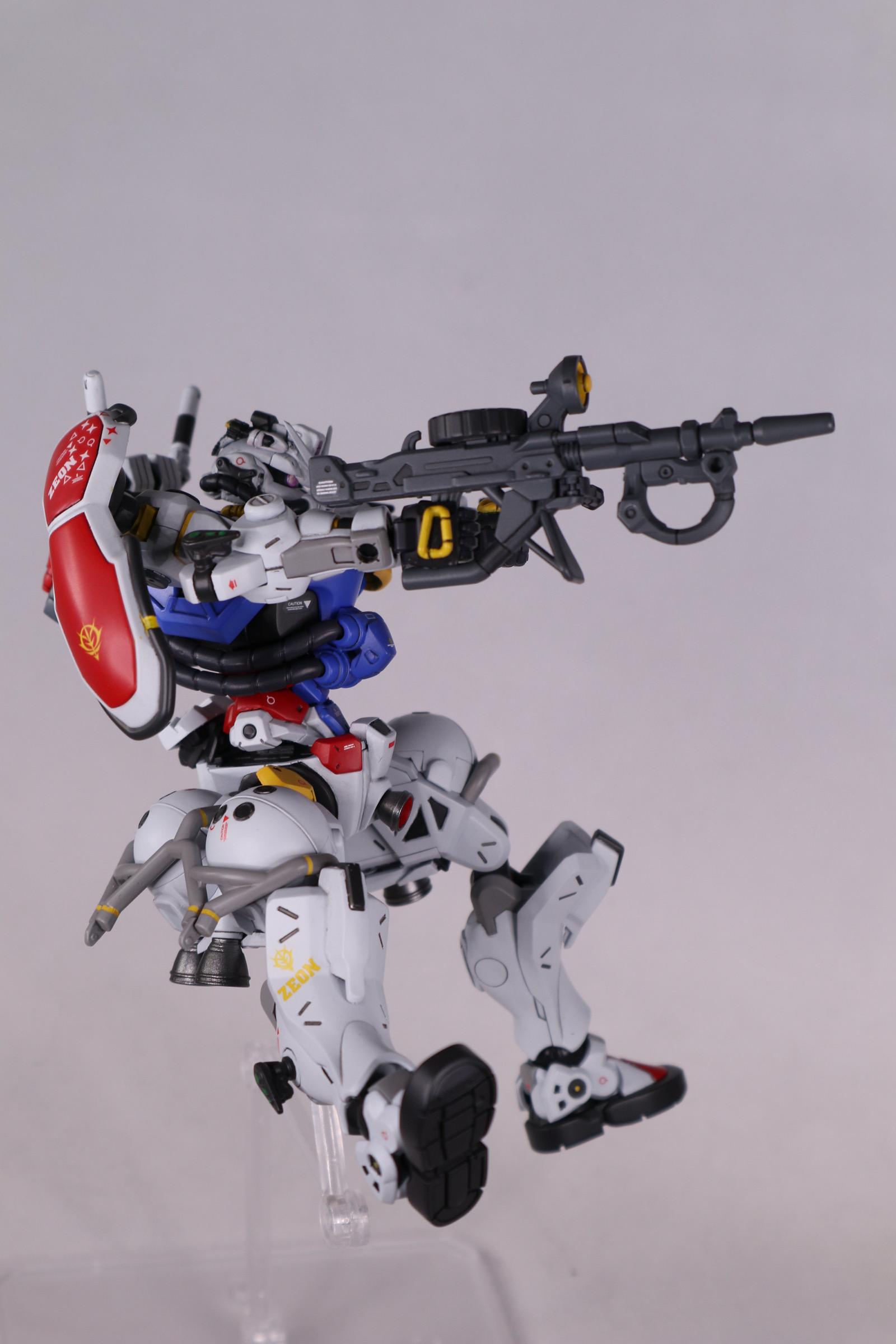 どうしたらガンダム寄りのザクできるかな?というわけでガンダムたらしめるパーツを切り貼りしてます。結構強引に付けてる為マスキング塗装は必須でした。GQキットはパーツやディテールがちいさくて全てをマスキングするのは困難だった為若干筆塗りもしてます。
