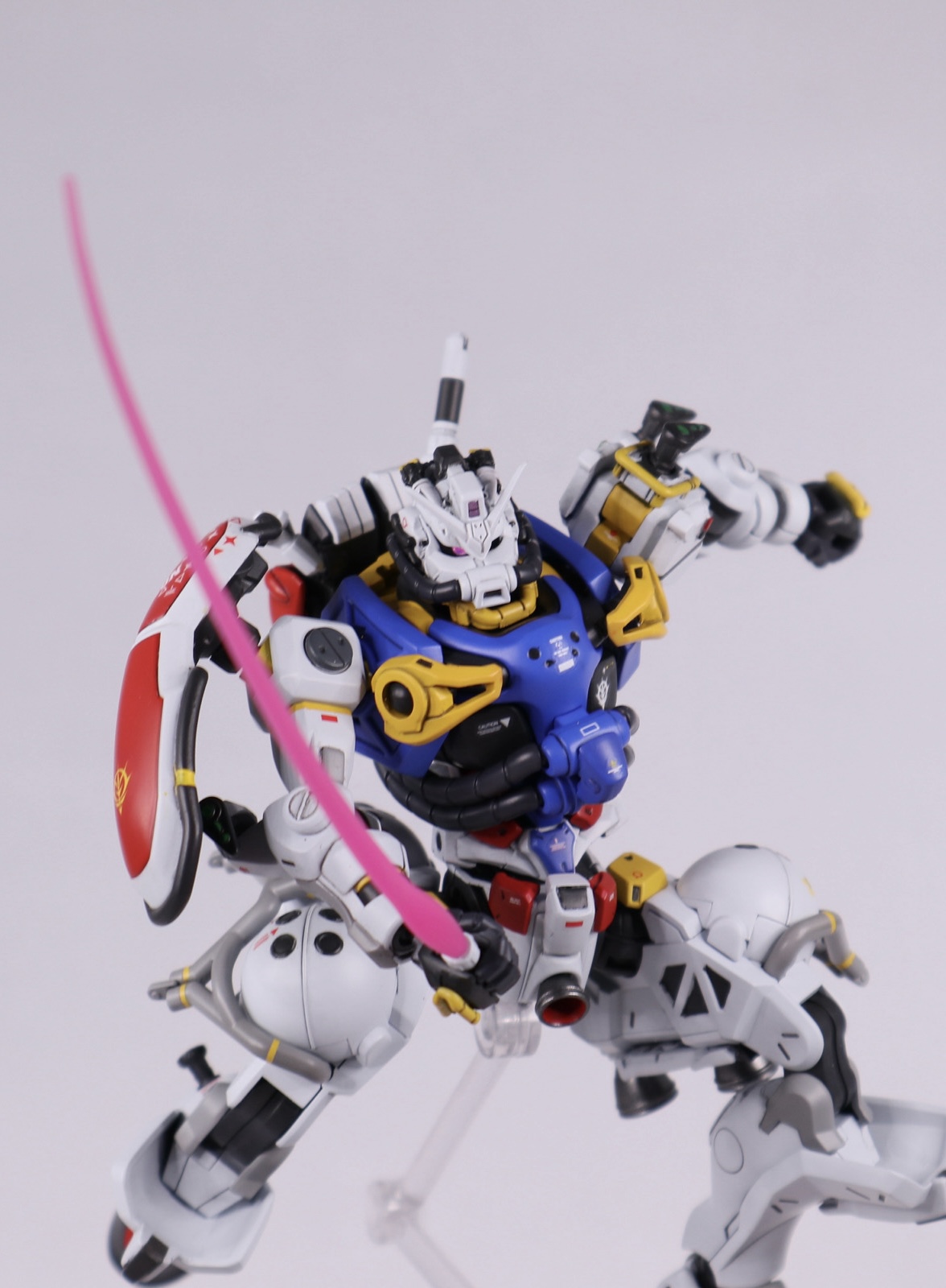 という制作動機は真っ赤な嘘で、赤いガンダムと軍警ザクが同時に予約発表になった瞬間、「にせガンダムGQ版作れるじゃん」としか思わなかったです。ジークアクスキットのみで作ってます。