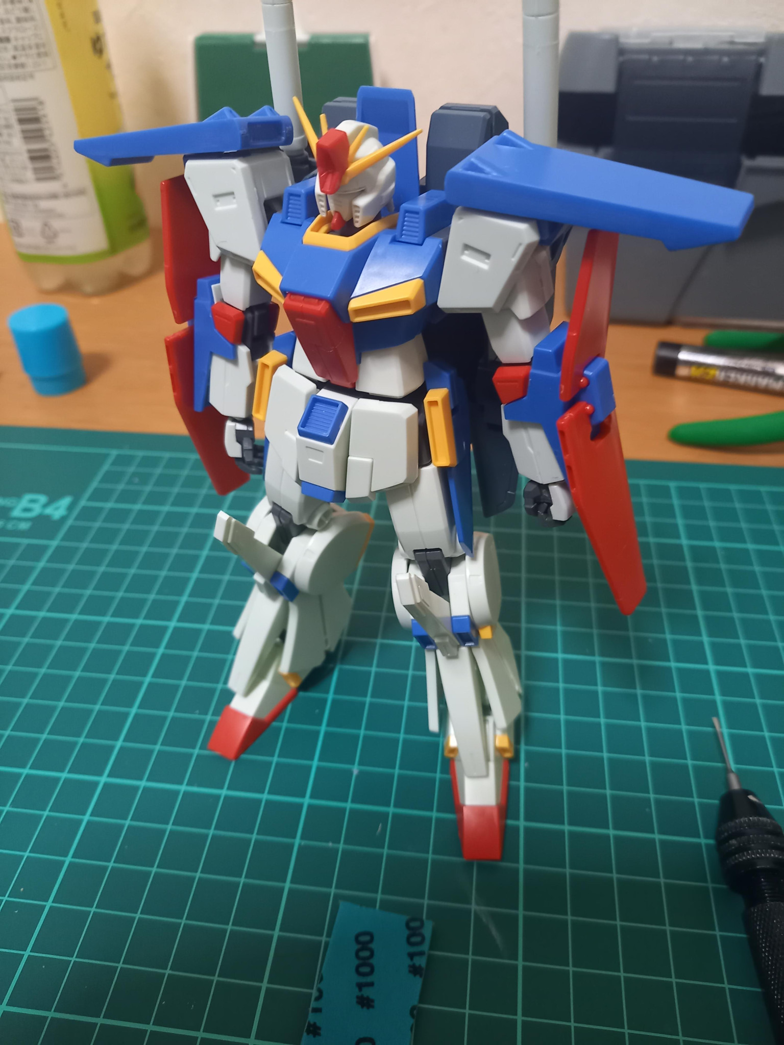 HGダブルゼータをver.kaを参考に筋彫り、延長、スクラッチ等でディティールアップしました。ふわとろ大尉の動画も参考にしつつ作り上げました。数年前の過去作ですので作りが荒いですね笑