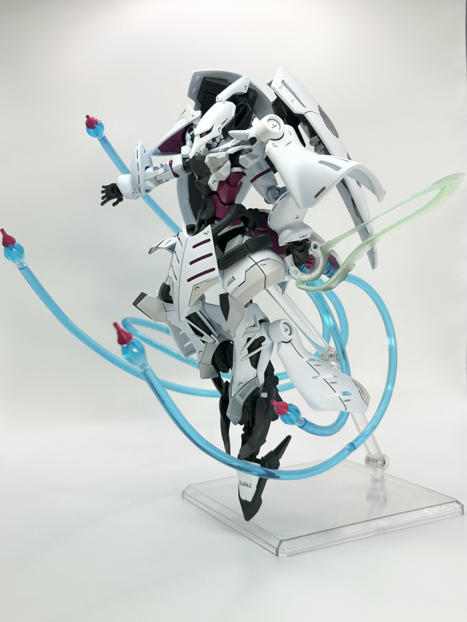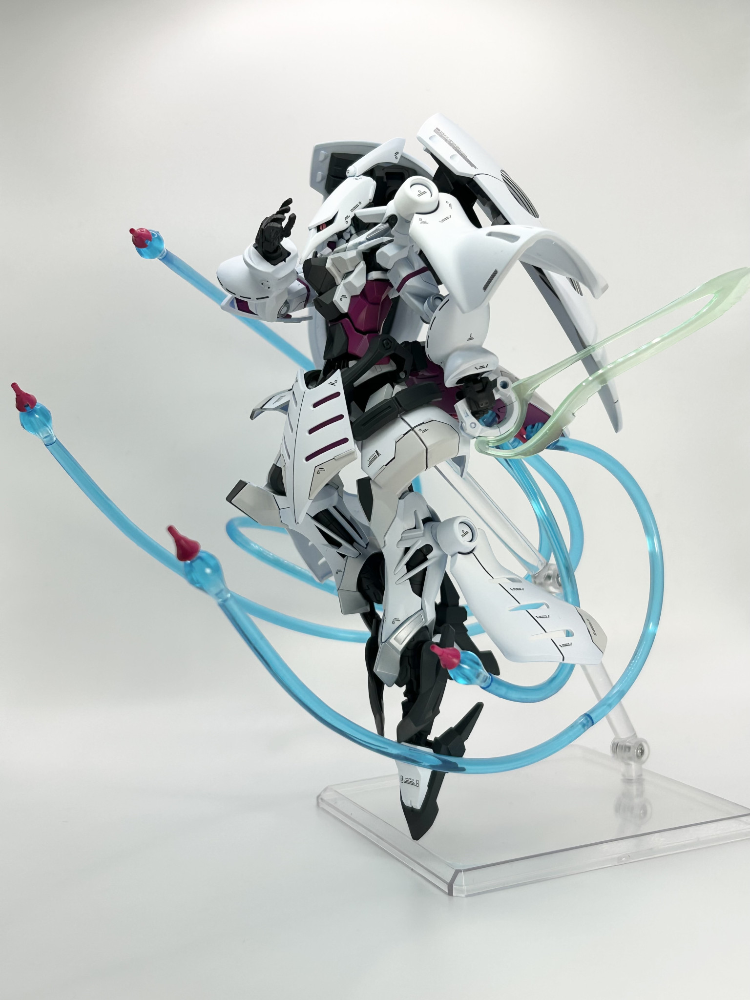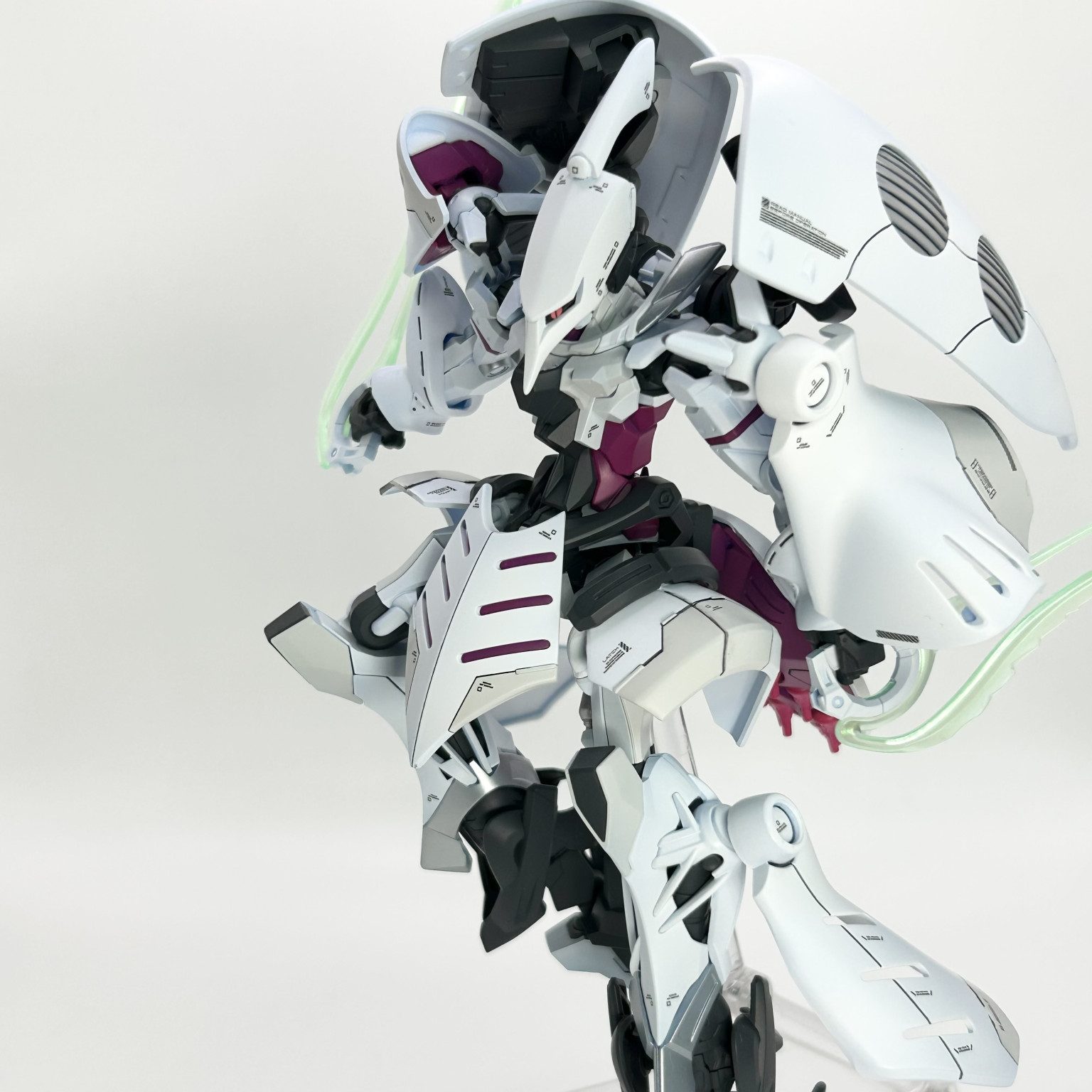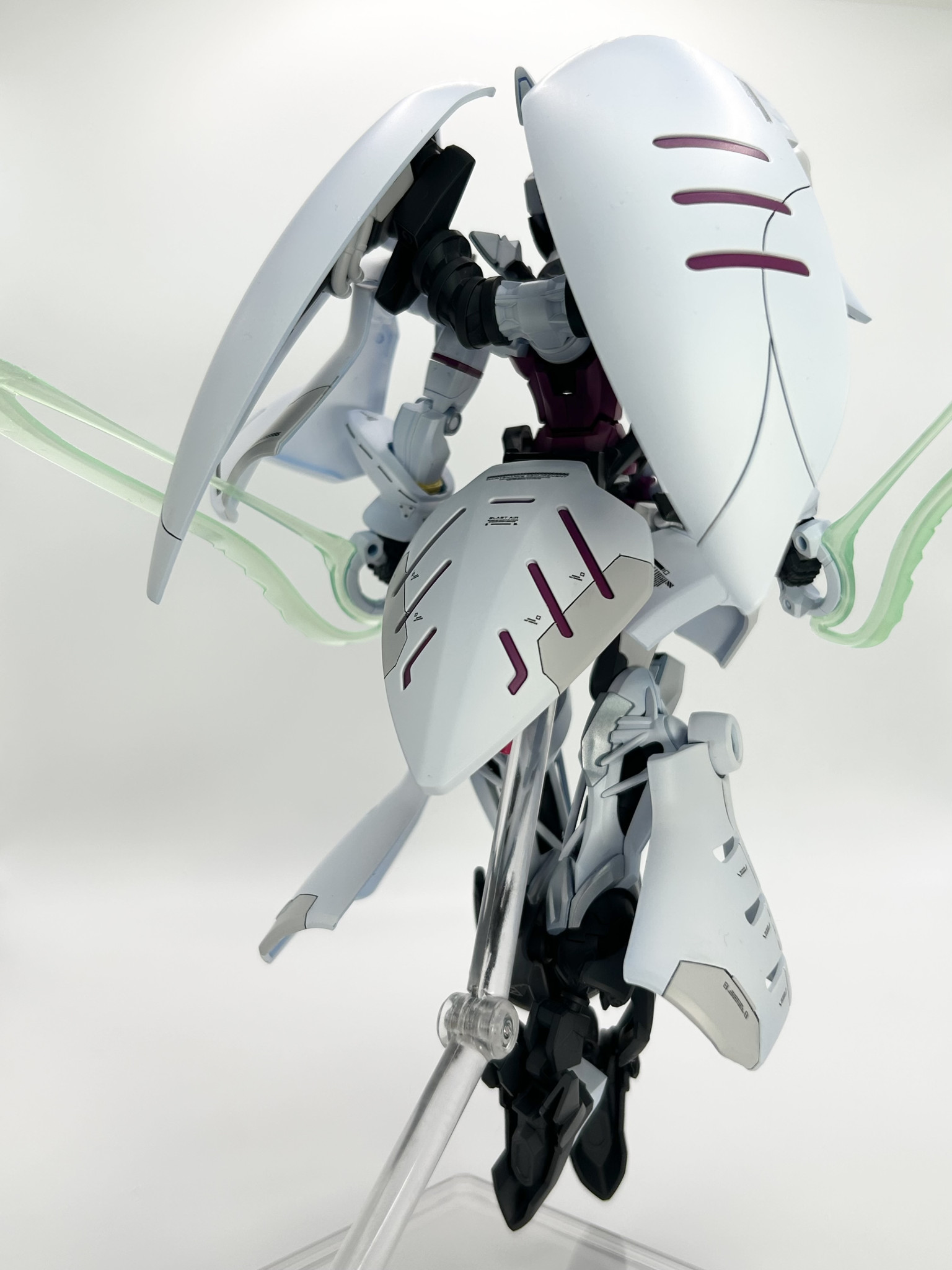 実はそれほど変えてるわけでもないのに、外観が大幅に変わってるように見えるミキシング、見事です! 設定としては、ジークアクスをベースにしてシャロンの薔薇をMSサイズで再現する実験機、ってところでしょうかね?