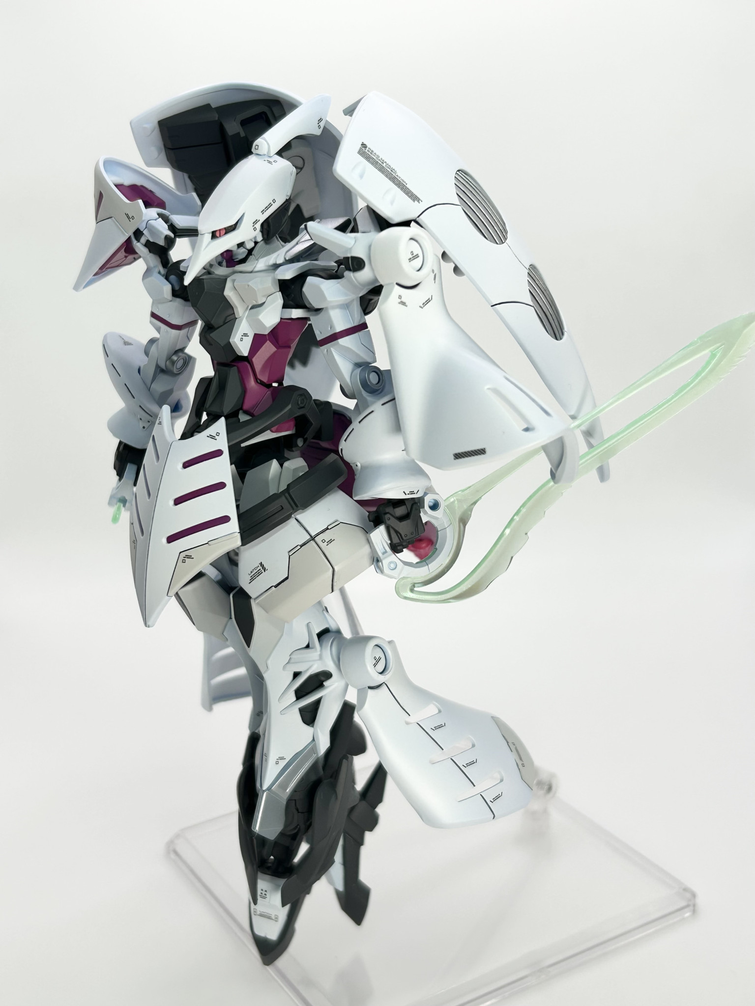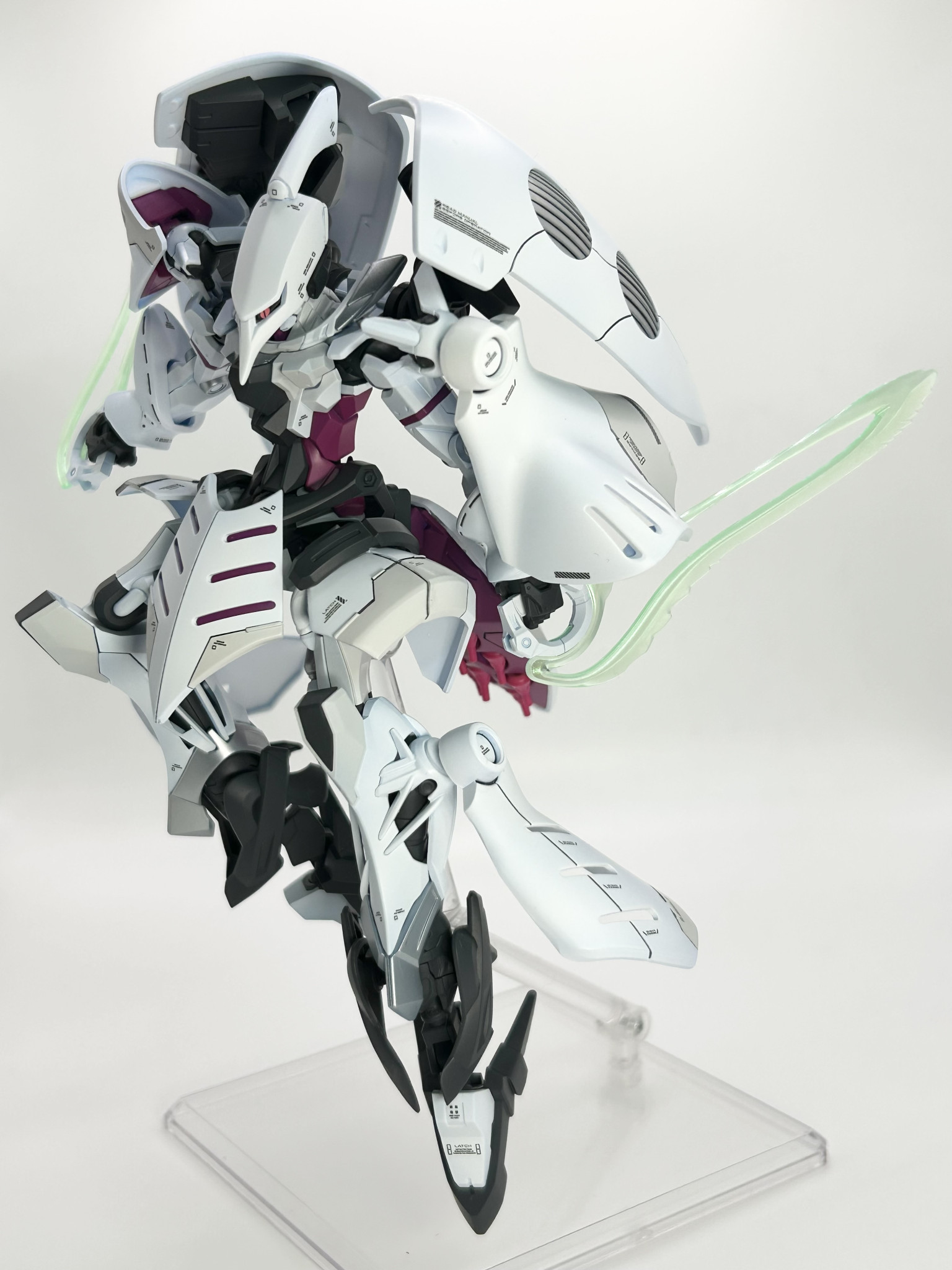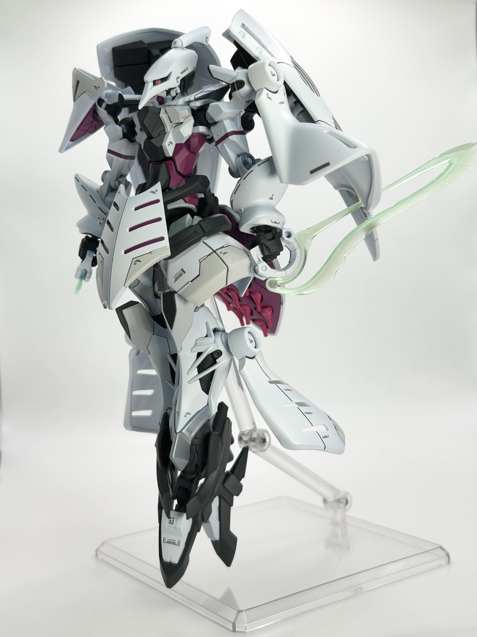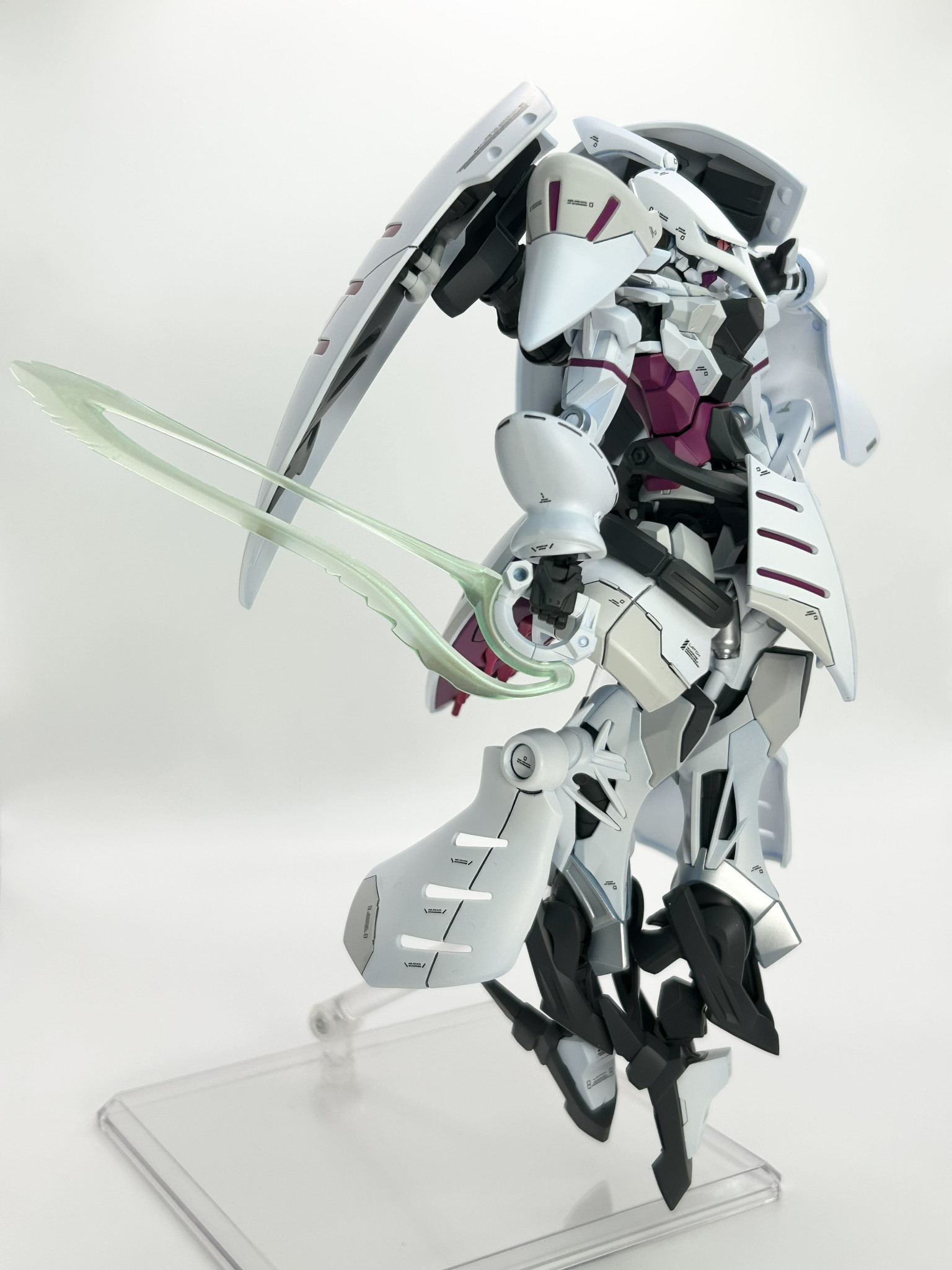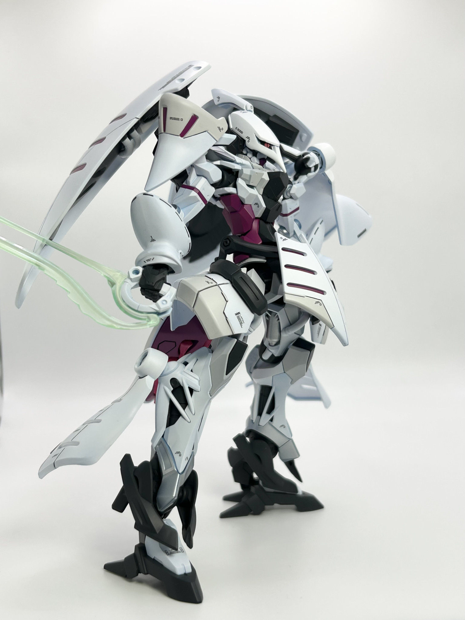 実はそれほど変えてるわけでもないのに、外観が大幅に変わってるように見えるミキシング、見事です! 設定としては、ジークアクスをベースにしてシャロンの薔薇をMSサイズで再現する実験機、ってところでしょうかね?