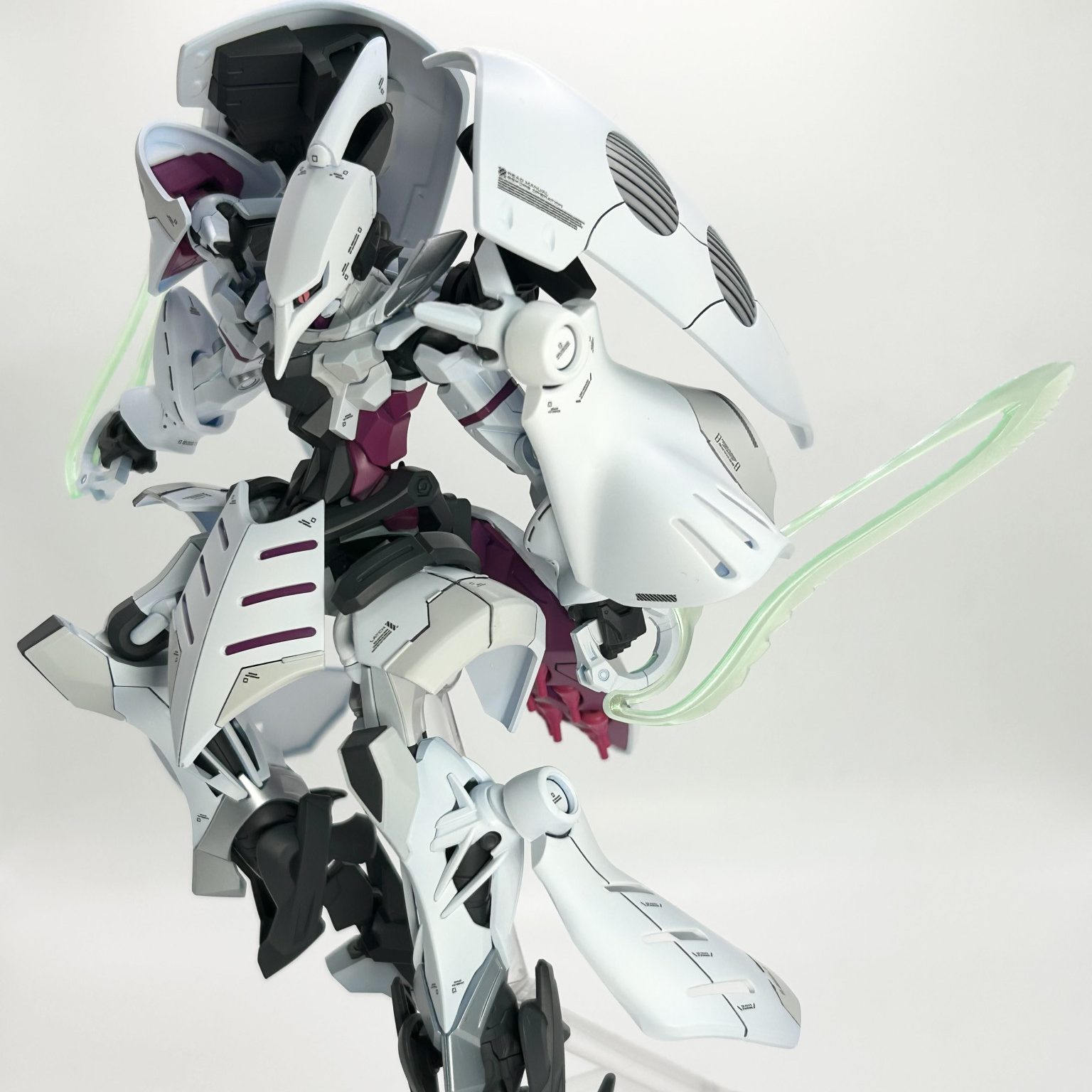 流石、ジークアクスとキュベレイの曲線あるシルエットがキレイに融合していて、女性らしい美しい機体ですね😁。ビームサーベルを逆手に持った姿も美しい😍。