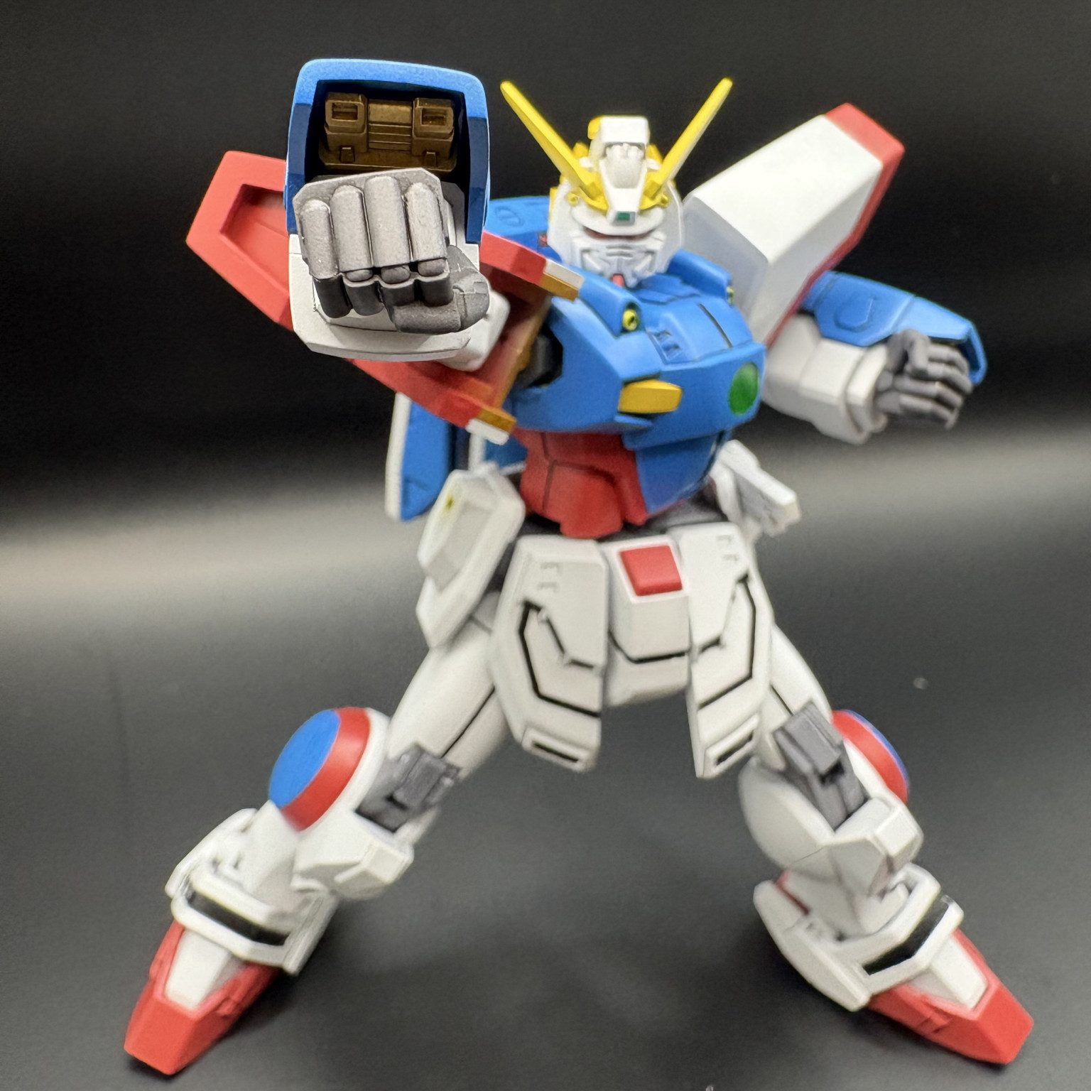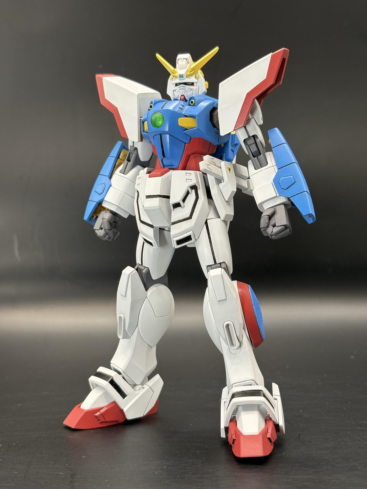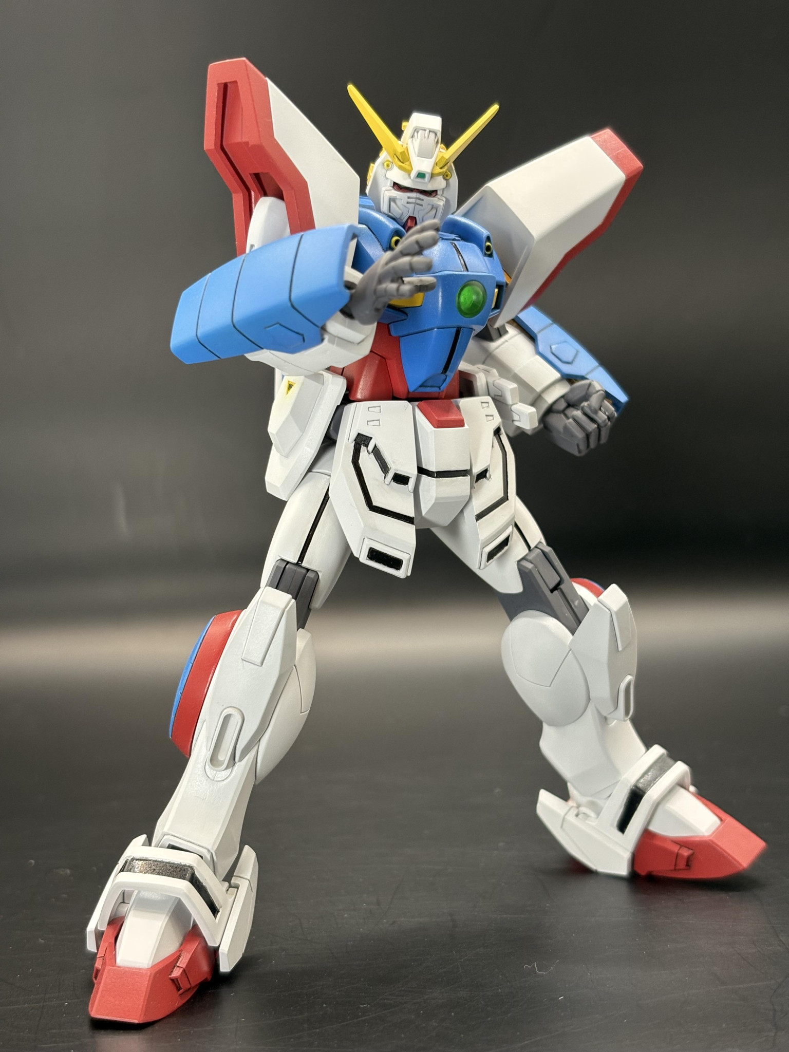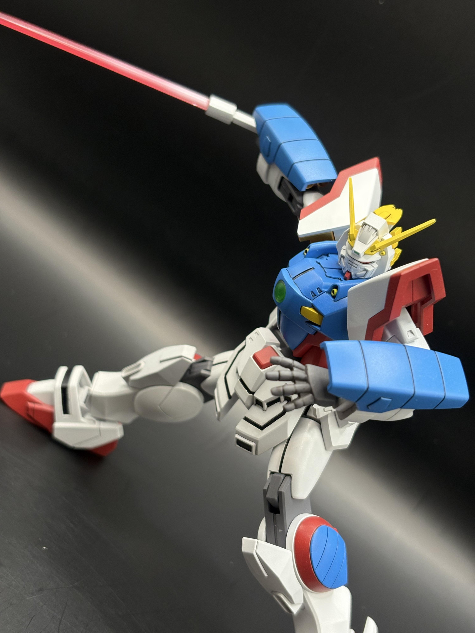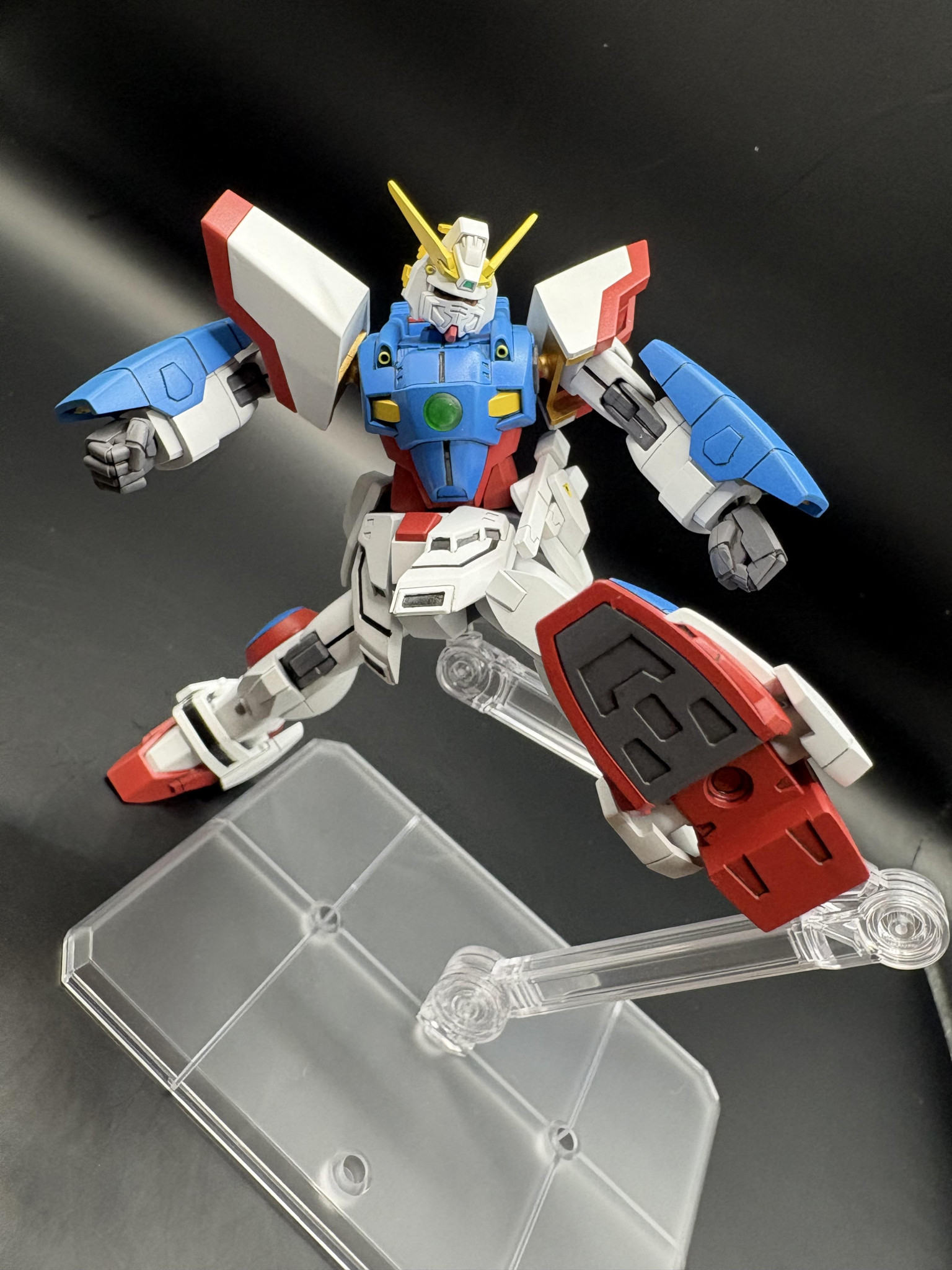 子どもの頃に初めて出会った作品がGガンダムだった自分にとってはとても思い入れのあるシャイニングガンダム。旧キットはグレードアップパーツも買って作ろうとしたものの、当時はうまく塗り分けなどできるはずもなく…今なら雪辱を果たせるはず!と塗装だけに気合いを入れて製作しました。←改造まではムリ…