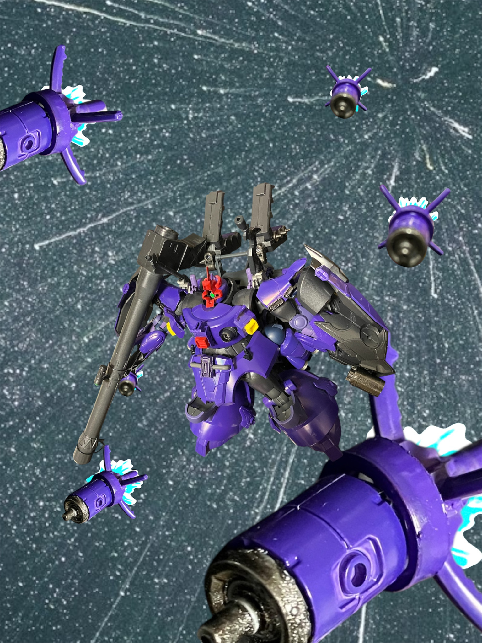 ビルダーパーツのファンネルや30mmのジャンクを組んだガトリングシールドにバックスカートで0093のネームド機にも負けないぜ^_^