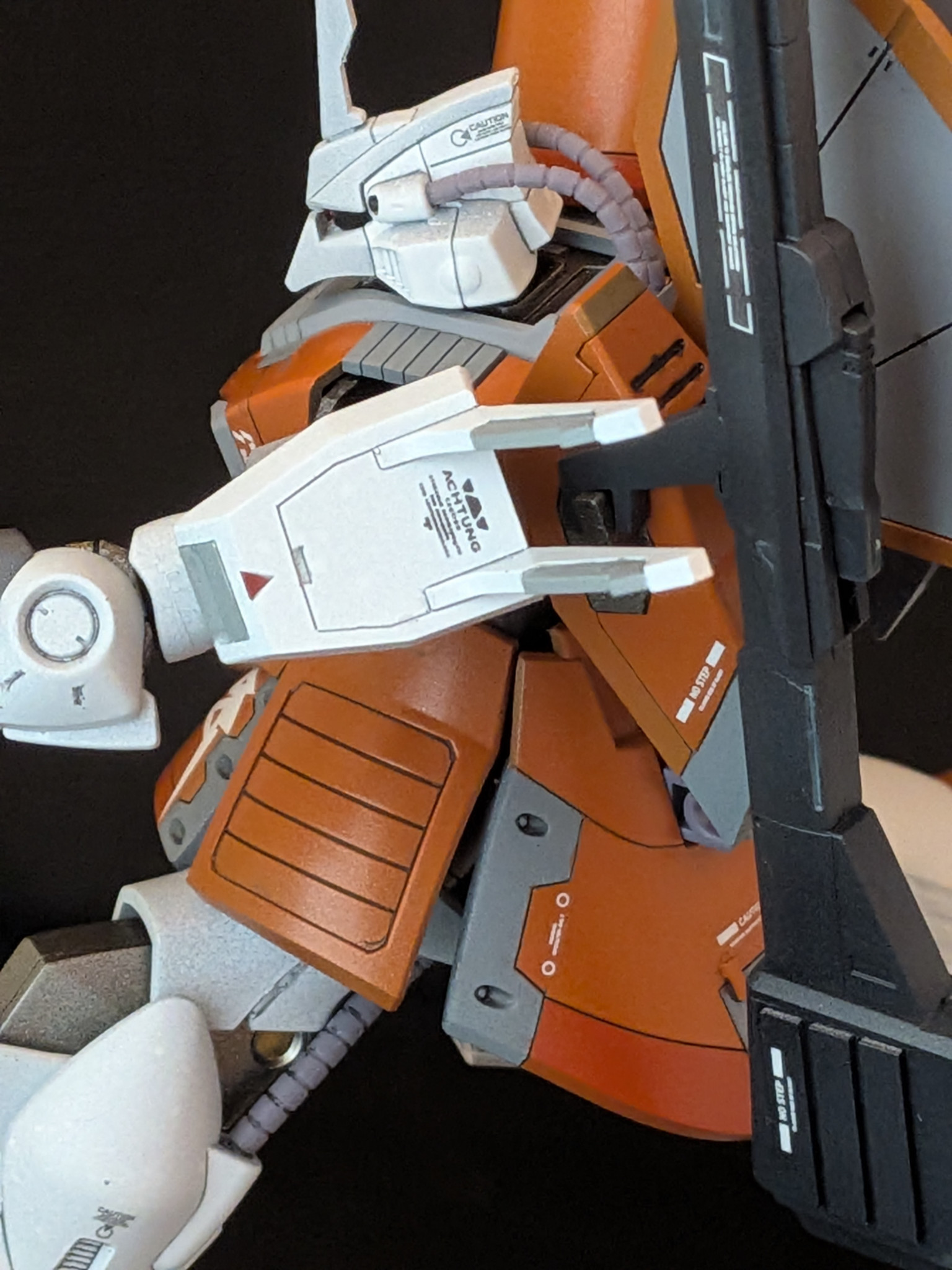 今回はアムロ専用カラーで仕上げてみました。パネルラインをそれなりに追加したのですが、以外とあっさりとした感じに仕上がりました。。。もう少しゴチャゴチャさせても良かったかなと。百式の時も思ったのですが、バズーカが短いな〜と、、、1.5cm程砲身を長くしてみました。どうでしょう?