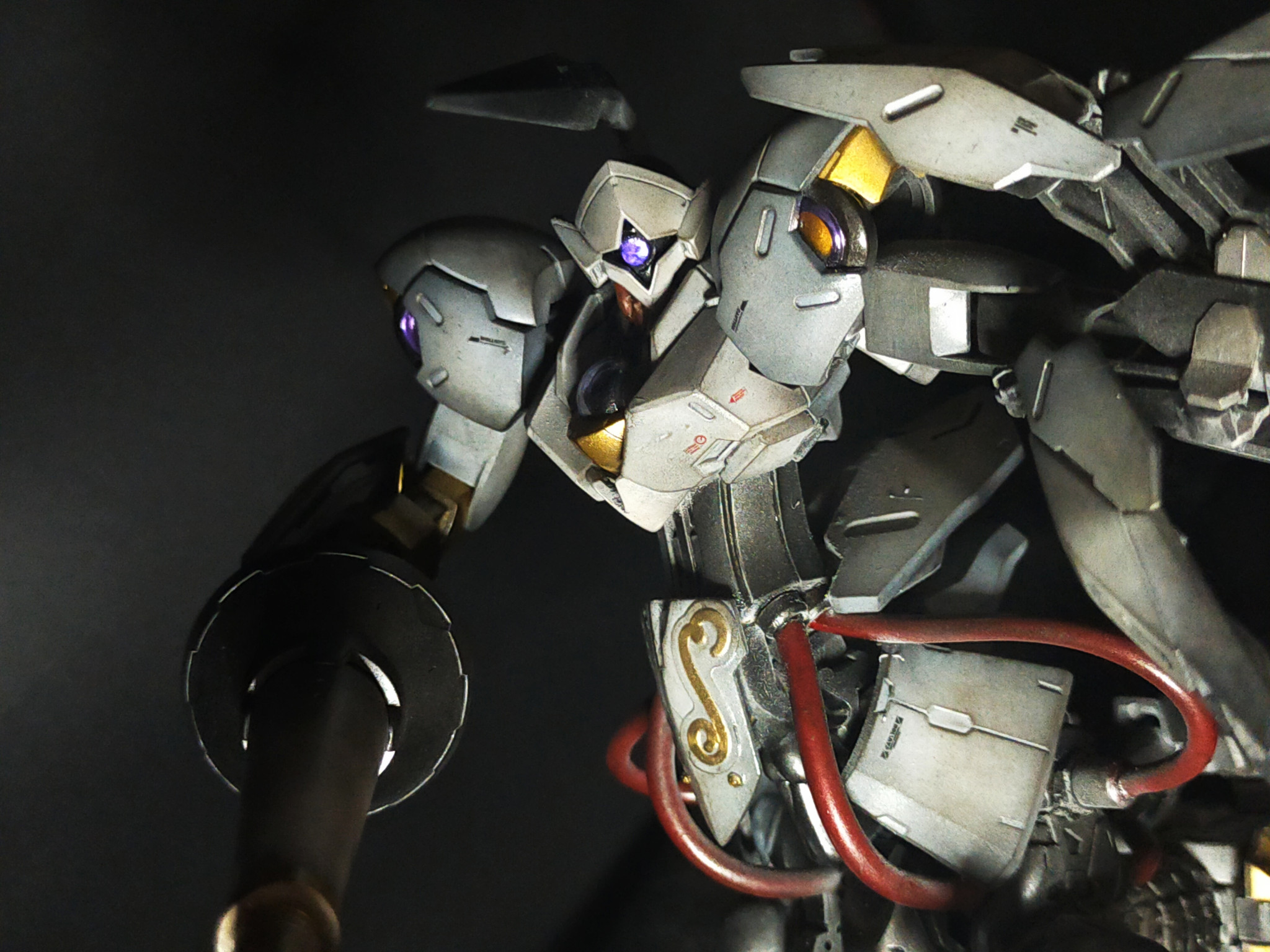 希釈多めのウェザリングカラー( 黒)で軽くウォッシングした後、ウェザリングマスター黒でムラを出し、上からウェザリングマスターシルバーで少し金属ぽくしている