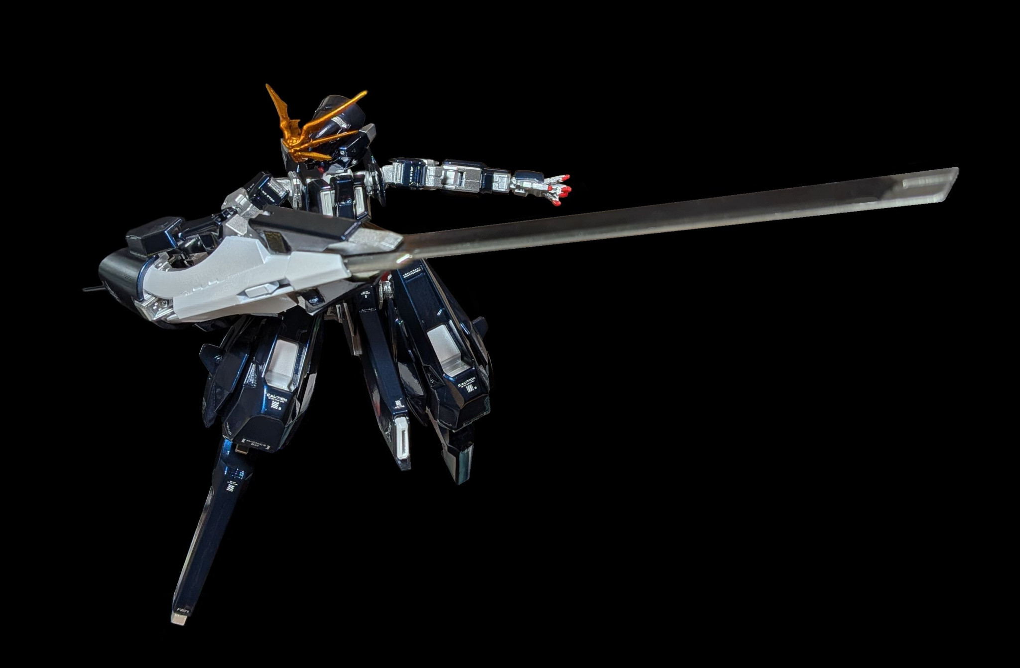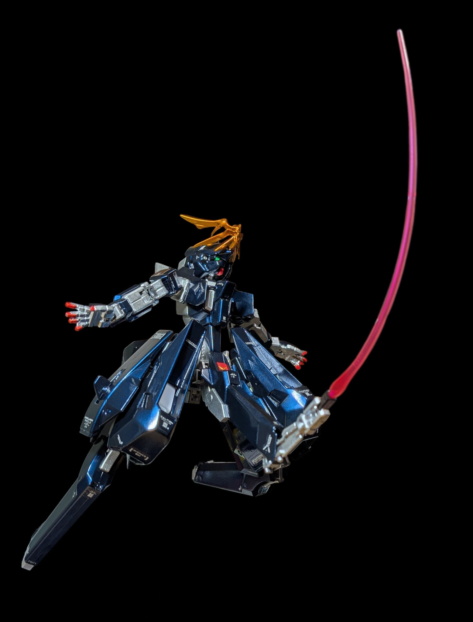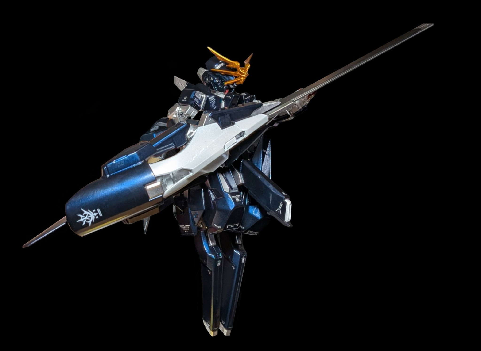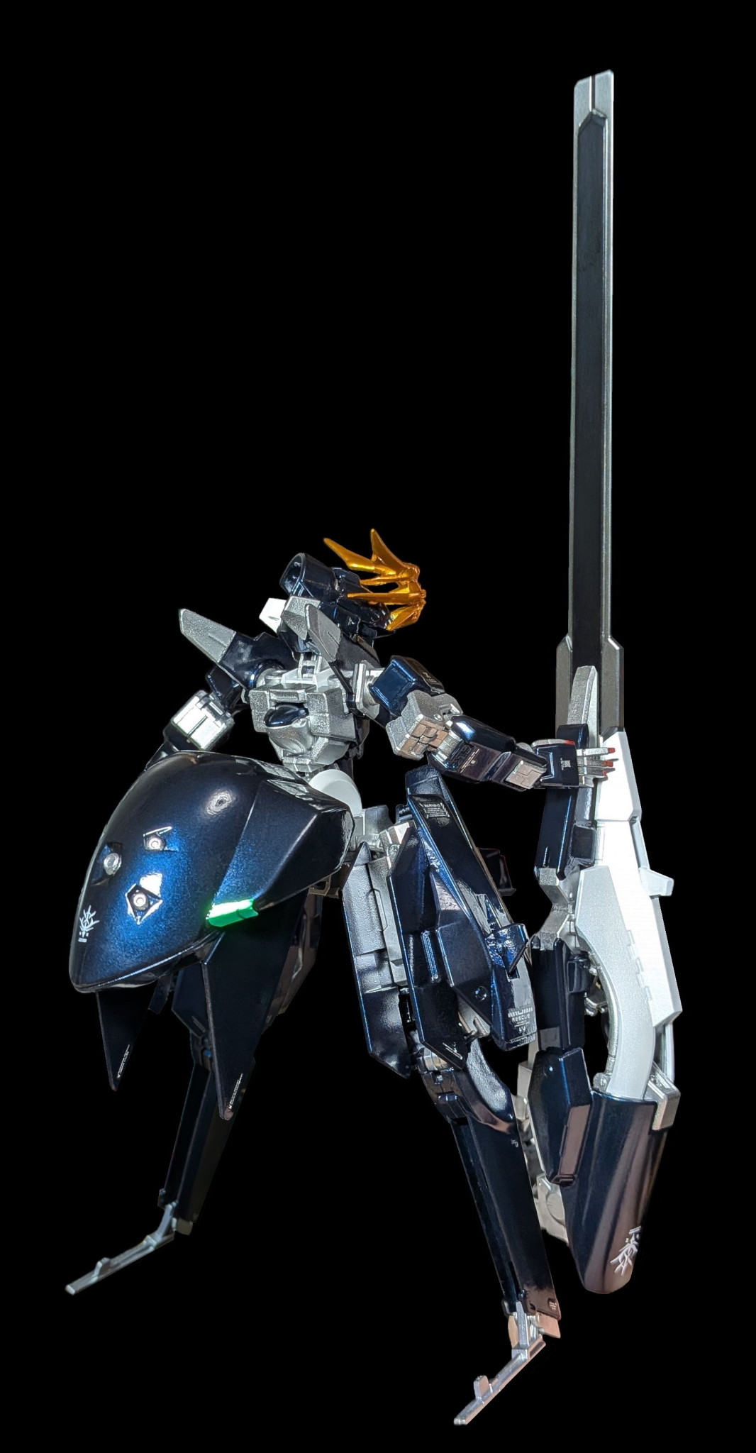 レジオン副総裁であるグロリア様専用機という事でフレームはガイアのメッキクロームシルバー、装甲はプリズムブルーブラックで塗装