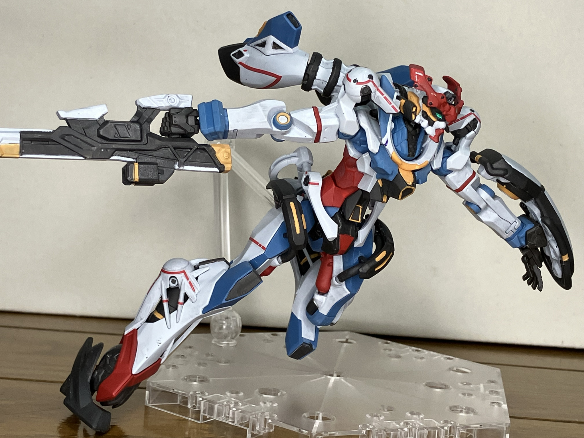 ビームブレイドで1枚。細かいデザインのため塗装は苦労したのですが、特に太もも部分の黄色の2本の短い方はモールドもなくほぼ感覚でだったのが苦労しましたね