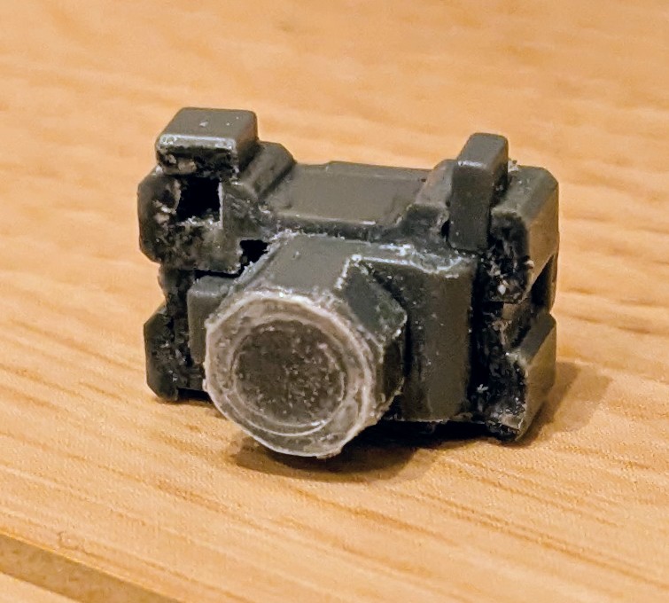 余っていたポリキャップを前後に切り離し、前部分に透明プラ板を貼り付けたものを接着してレンズ部分に、後ろ部分を貼り付けてフィルム部分にしてみました。