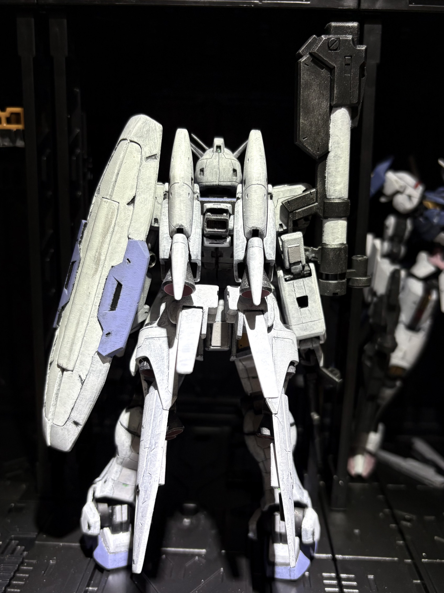 顔がバカ殿みたいになってるのは、頭の謎の段落ちモールドを消すために、合わせ目消しをしたのですが、後はめが出来ずに先に筆塗りした結果です。中級では無理でした泣。設定でもきちんとモールドがあるのですが、好みで無かったので一部埋めてやりました