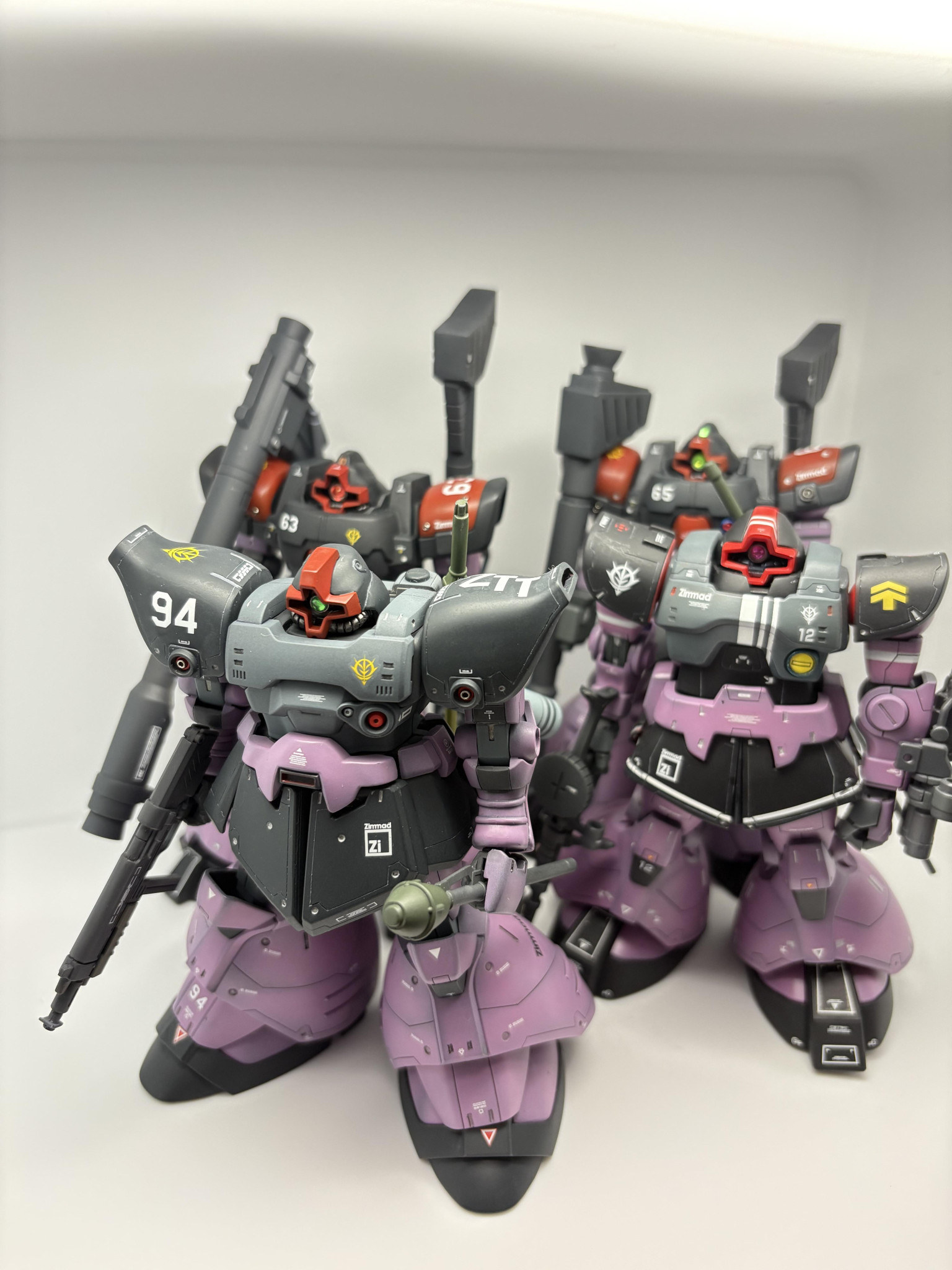 今日はドムの日なので最近作成したドム等(トモダチならぬドムダチ)と機体番号は結構苦労して作ったからか、無意識に94(クルシム)になってますが、完成させられたのでこれは越えたかと。
