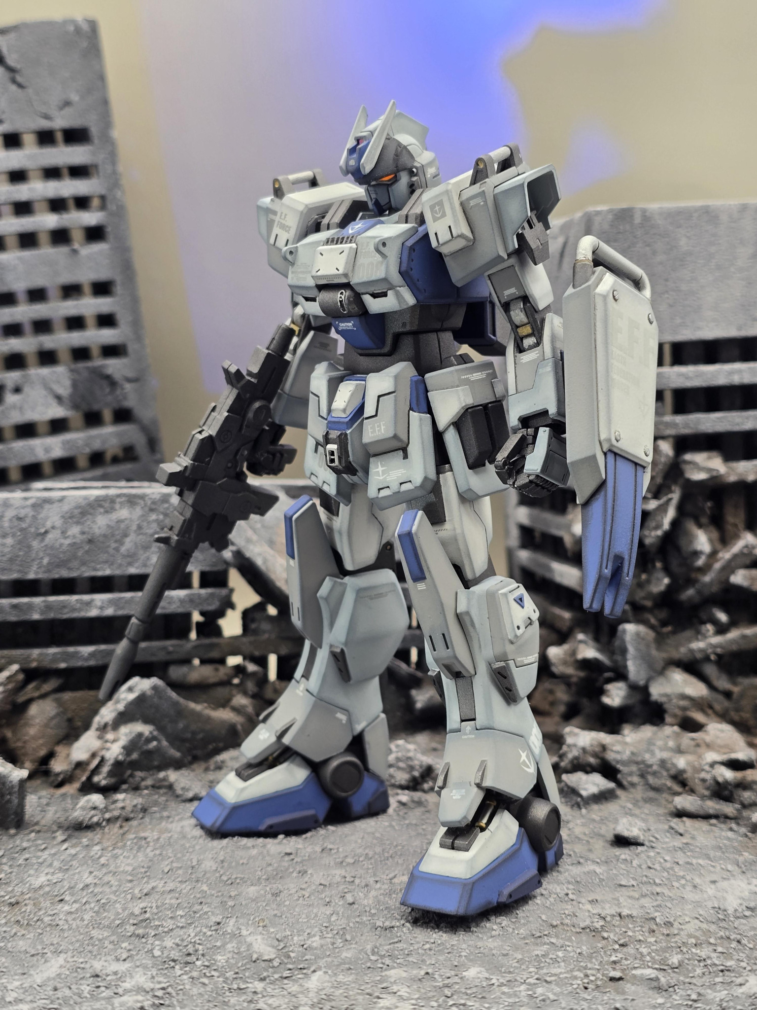 北米オーガスタ基地に配備されていた大破した陸戦型ガンダムをベースに、東南アジアから転任してきた、かつてEz-8改修した整備班が上長決裁をとり、かつてのEz-8の問題点をブラッシュアップしながら再度改修したもの。