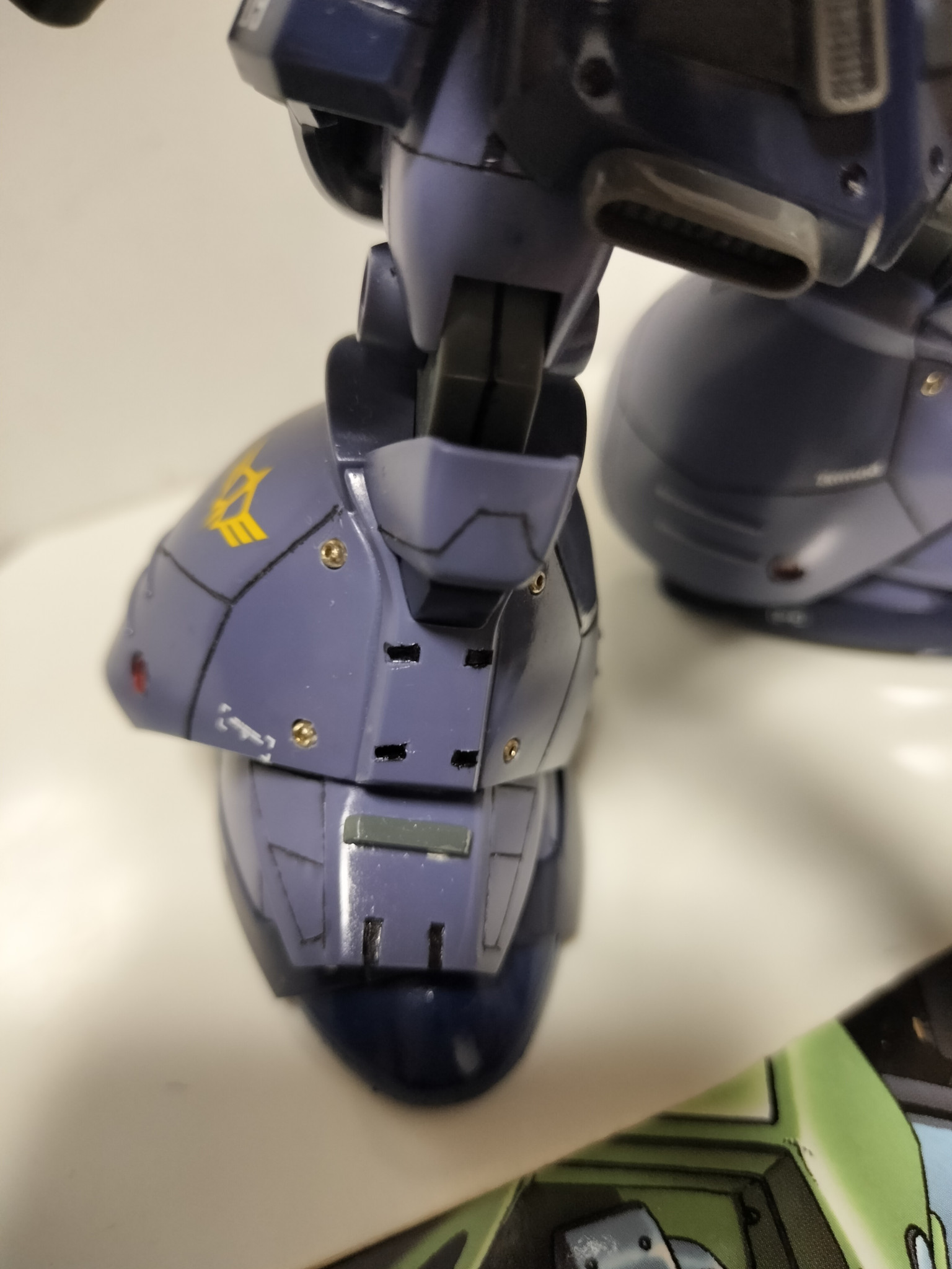 今回は水性塗料の筆塗りしました。 薄い方の青がそうです。 肩…