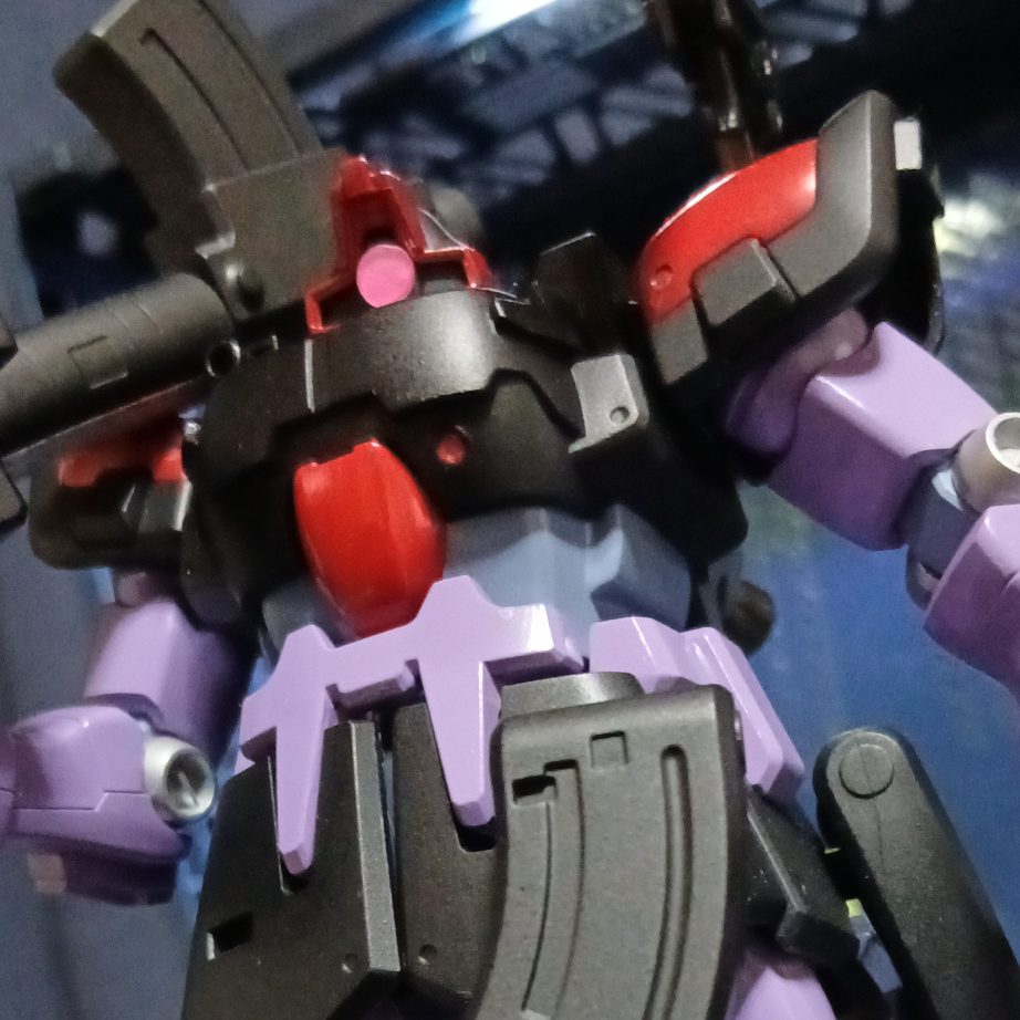まずモノアイをズーム型にしてみました。たしかビームサーベルのランナーを丸く切り出してレンズ部分に使用しました。それから、胸部バルカンを追加しました。☺ビームサーベル等のランナーって、ライフルやその他のレンズ部に使えてなかなか便利ですよ😁