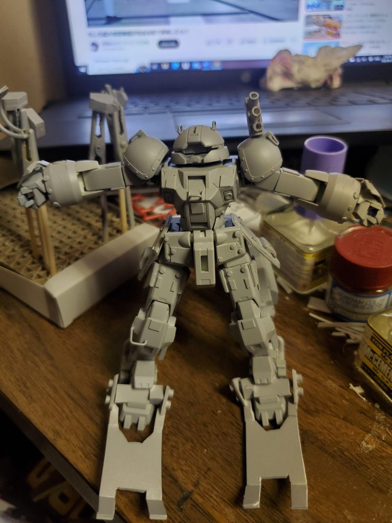 当時水星の魔女シリーズが流行っていたときに製作したガンプラです。装甲騎兵ボトムズに出てくる機体をモチーフにしたデミトレーナー、バーグラリートレーナーです。学園でメルキアから来たと言う謎の生徒が自ら改造したデミトレーナーと言う設定です。