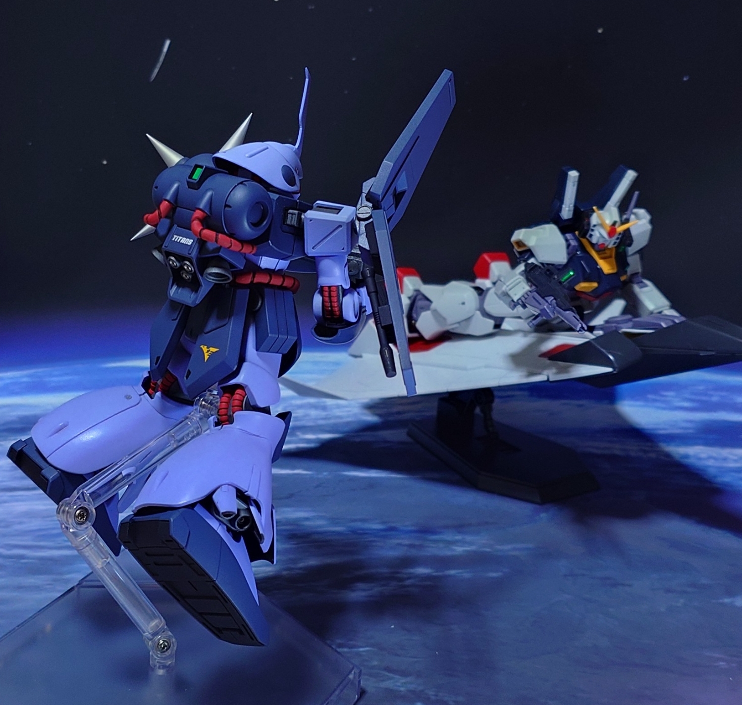 体勢を崩したガンダムMK-Ⅱに斬りかかる!