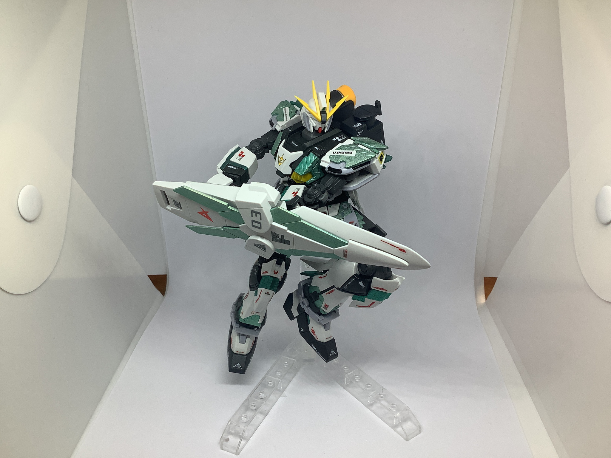 左腕のデカールは普段シールドで隠れてるからわざわざこんな変なポーズにしないとよく見えないのが悲しみ