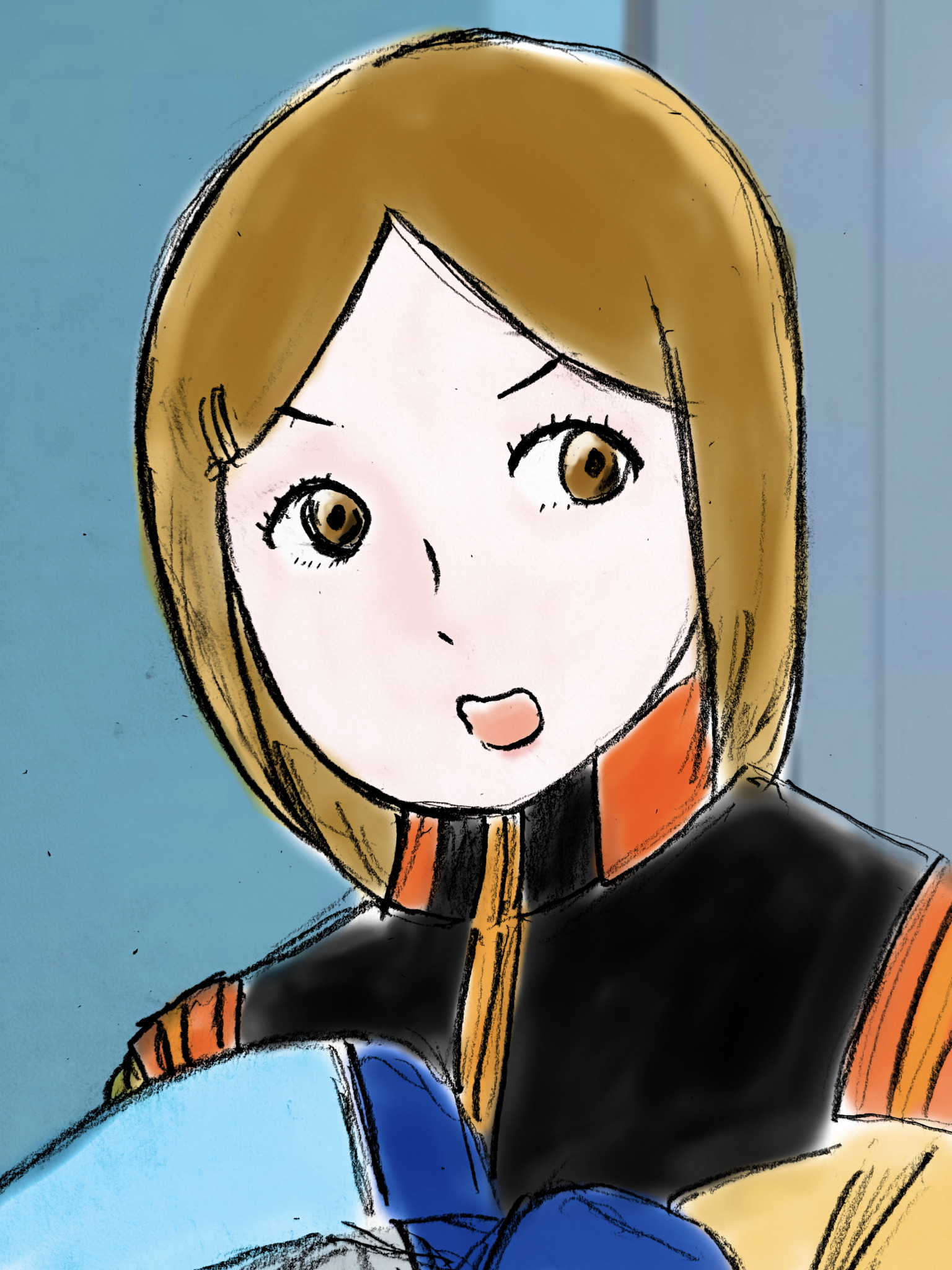 コンパートメントを出て、MSハンガーに向かうと、ミヤギ専属の衛生兵、チタ・ハヤミ少尉が駆け寄ってくる。いつもの朝と同じだ。