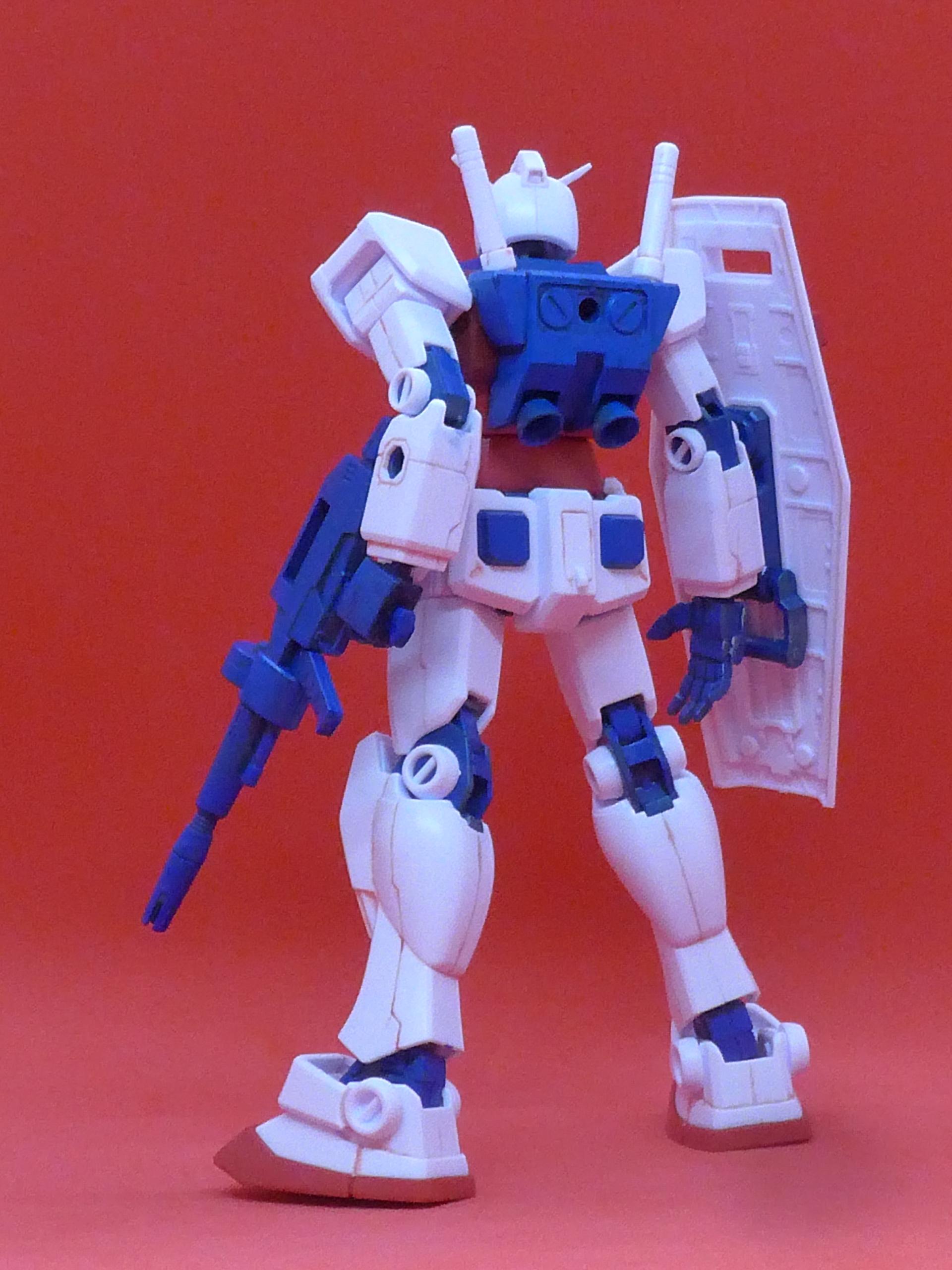 元のキットは東京2020パラリンピック仕様のガンダムです。東京はおろかパリも終わったのに積みプラ状態でしたので何とかしたいと思っていたところ、「関節等のグレーと濃い黄色の部分を青にしたらEXP●2025のイメージカラーでいけるのでは?」というところで、完成となりました。改造らしきこととしては、頭部アンテナをシャープに削り、前腰アーマーを左右分割したことぐらいでしょうか。
