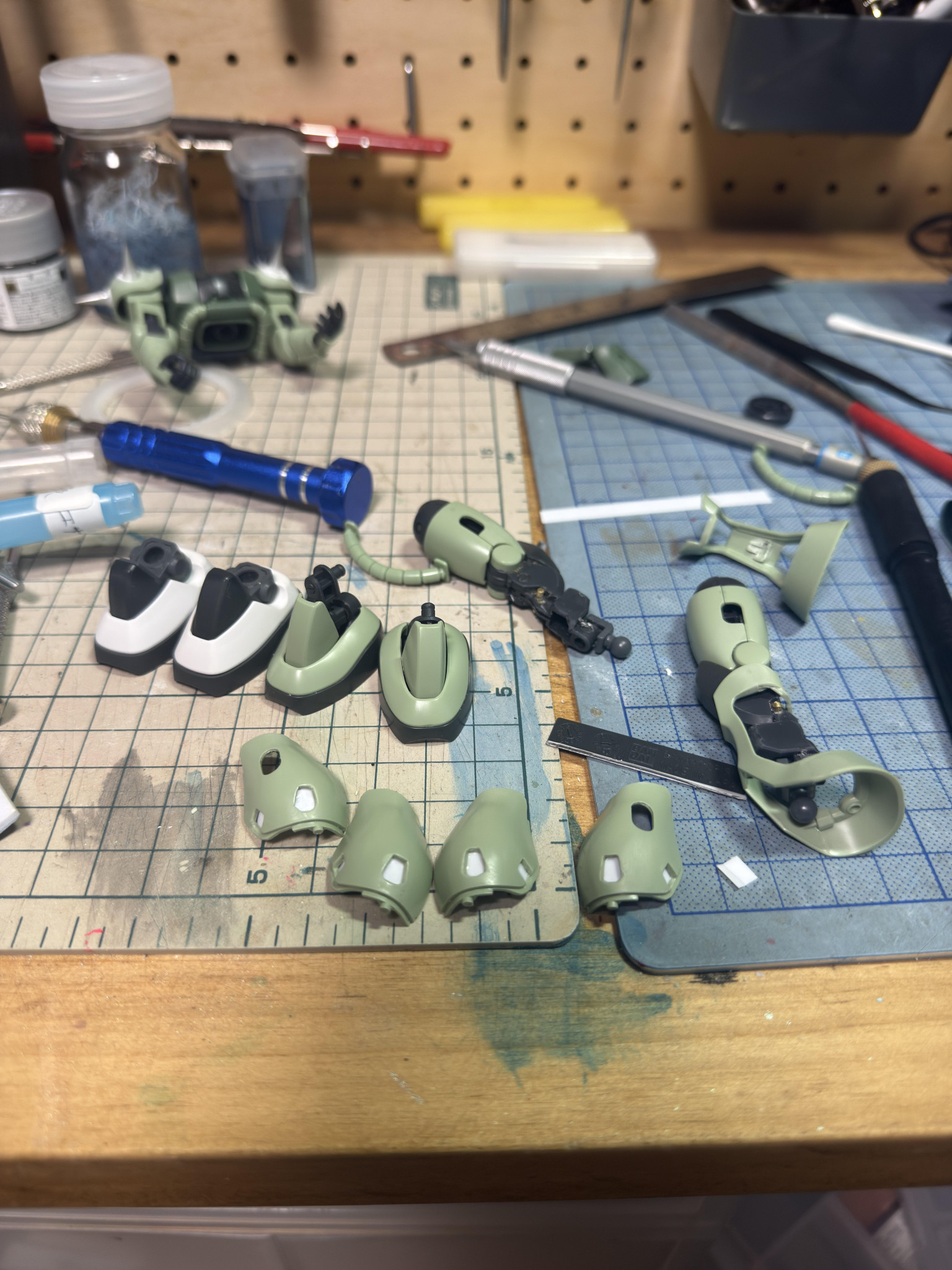 ・スカートは、リバイブザクIIの分割が気に入らないため、MGやリバイブ前のザクIIと同じ分割になるようにカット、接着、パテ造形。