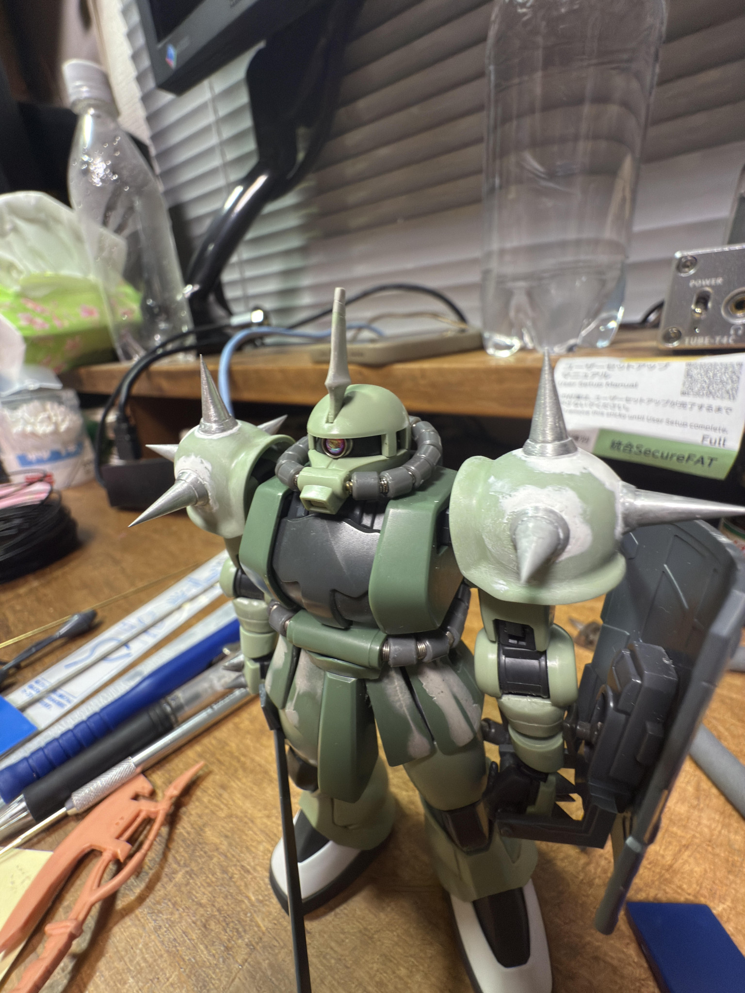 ・シールドはシャア専用オリジンザクⅠのジャンクがちょうど余ってたので拝借し、スパイク4箇所接着。