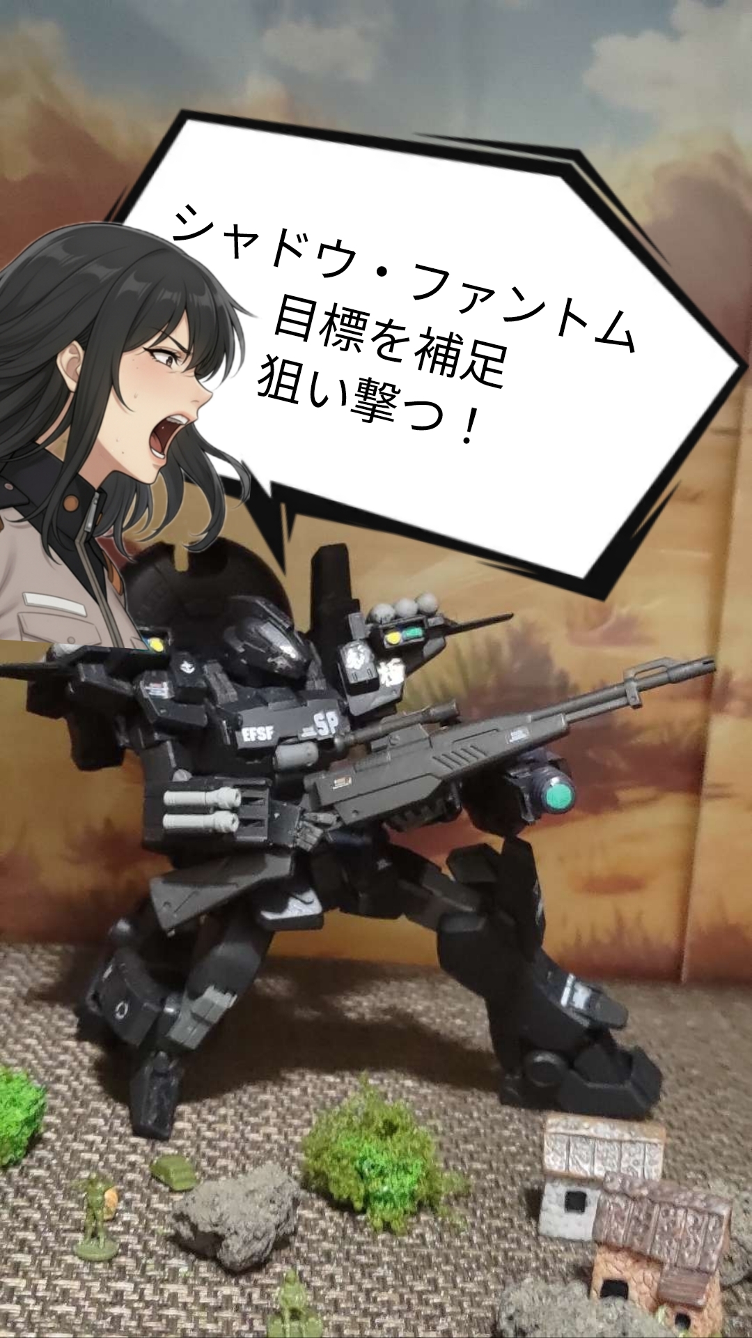 レーダードームにて索敵しステルス機能を生かしスナイパーライフルにて先制攻撃、狙撃する!機体を作成したいと思いこのカラーリングにしました。筆塗りでーす!人生で一番上手く筆塗りできたと思う(笑)