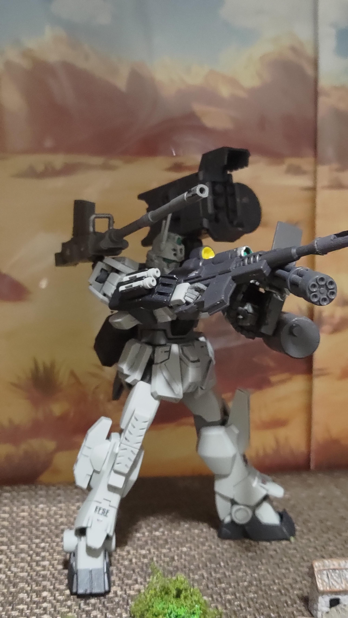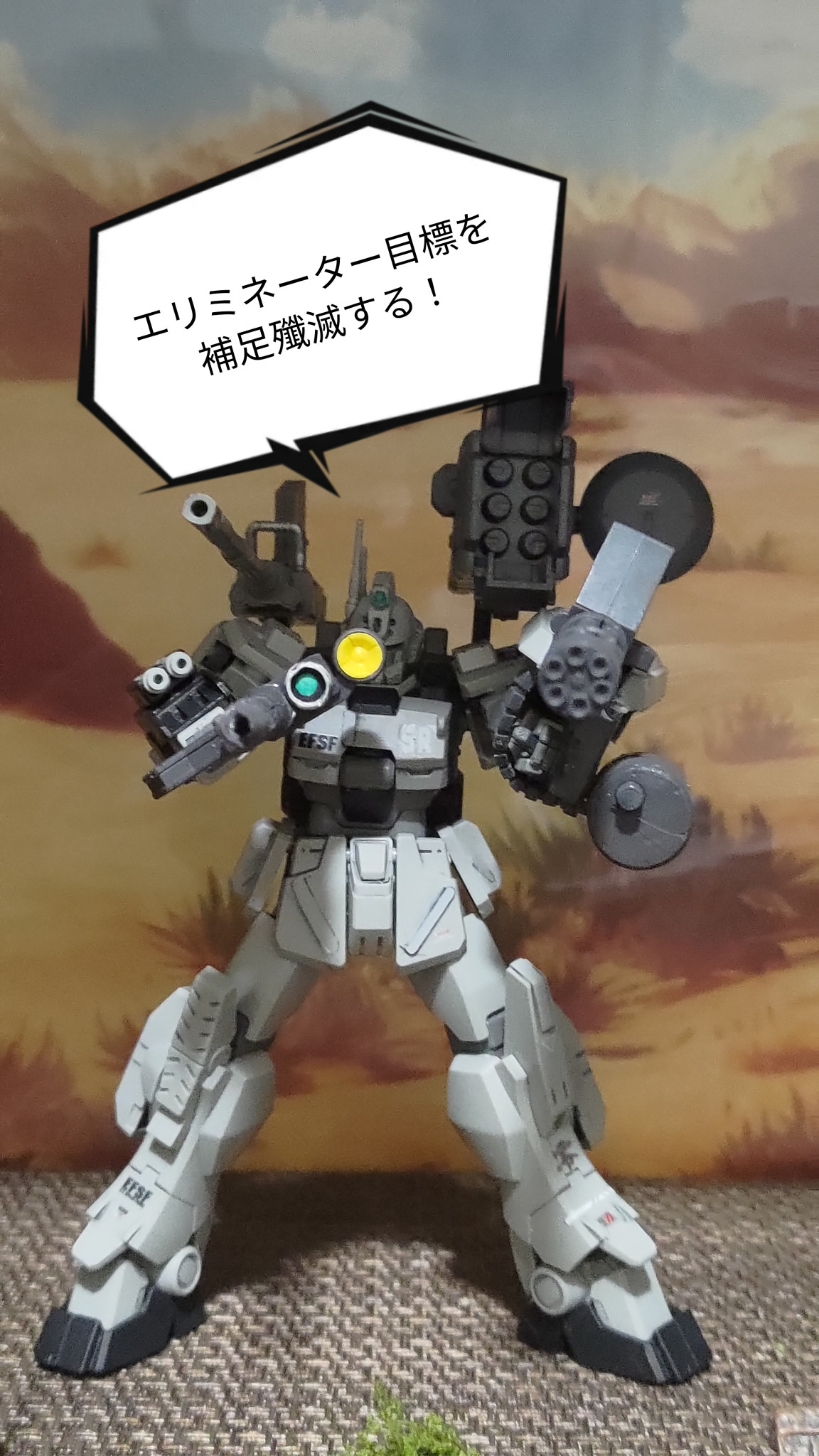 ez-sr・エレミネーターです。自分好みになるよう、ヘッドを付属しているez-8の物へ変更しビームライフルをガンキャンの物に変更、グフカスからガトリンクを移植しつつ、