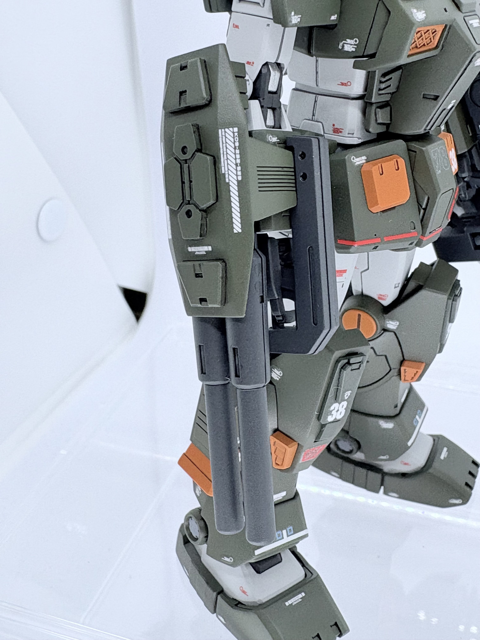 リアアーマーにこちらもMSD版ジムからビームサーベルとマウントパーツを拝借、バーニアはメタルパーツに変更、バックパックの黒い部分の横から出てた謎の棒は切ってコトブキヤのスラスターに変更しました