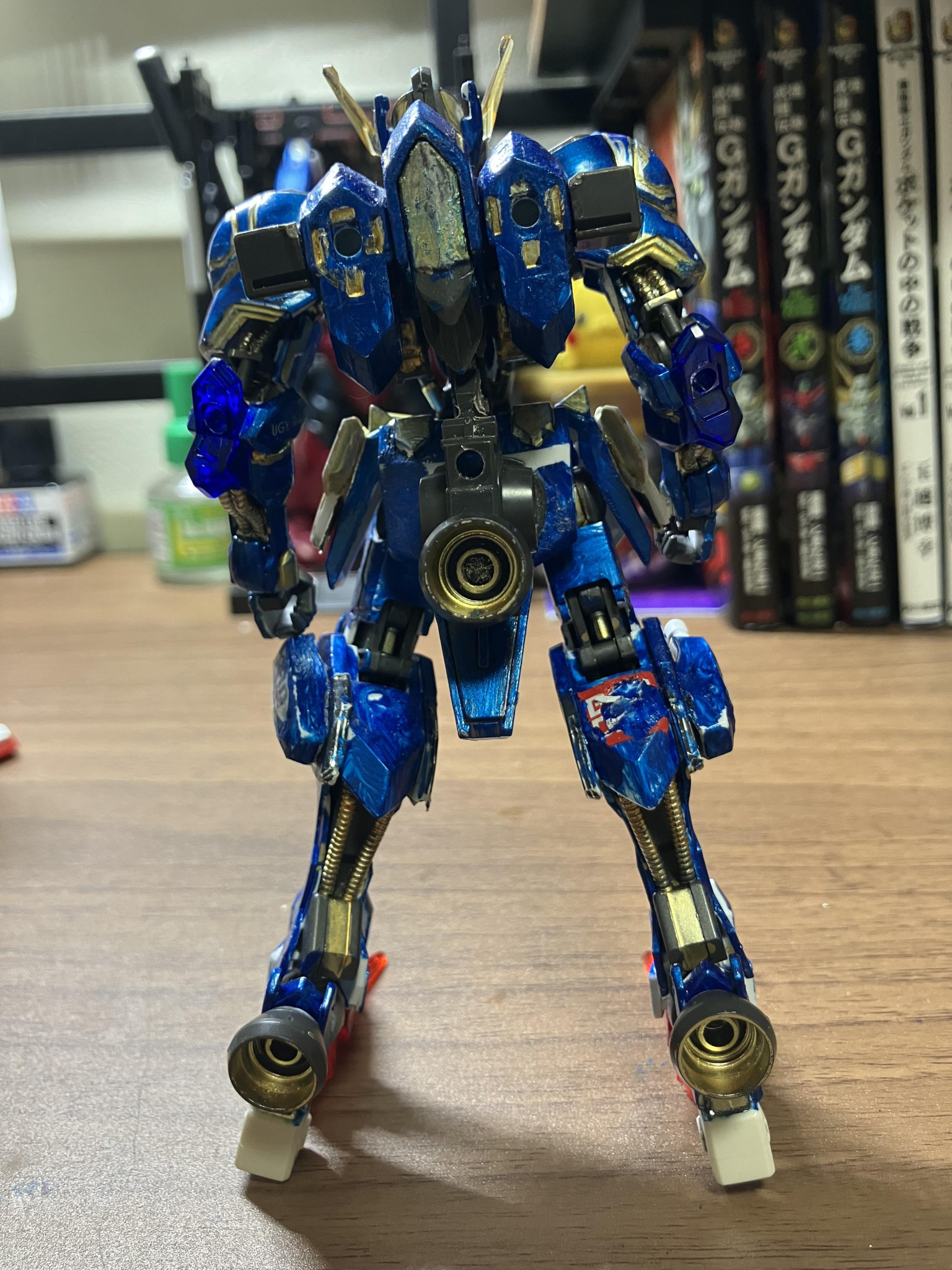 Arukun060… HG 2025.10/10更新 ゴットバルバトス 56 30 いいねしたモデラー(30) 0 0 作品を共有 初めて改造したガンプラでござる。 なんでバルバトスを青で塗ったかと言うと俺はこれを作ってた時青色の塗料を初めてゲットして初めての塗料で塗ったからでござる。これはとても思い出深い作品になったでござる。この頃は作品に色んな武装をつけてみたくて試しにビームサーベルを持たせたらすごくかっこよかったのでとっつけた感じでござる。戦い方は本来のバルバトス同様格闘重視でござる。バーニアは3つ追加で取り付けたのでござる。やっぱりバルバトスは速い方がもっと強くなるのかなぁっと思ってつけたのでござる。どうでござったか?これが俺の初めて改造したガンプラでござる。 コメント コメントをして応援しよう コメントにはログインが必要です Arukun0609 こんにちはでござる〜、拙者は白狐のアルと言います。ガンプラ改造がとても好きなのでこれからよろしくお願いします。 この作品をお薦め作品に設定する Please login to update your profile! Please login to update your profile! Please login to update your profile! Please login to update your profile!