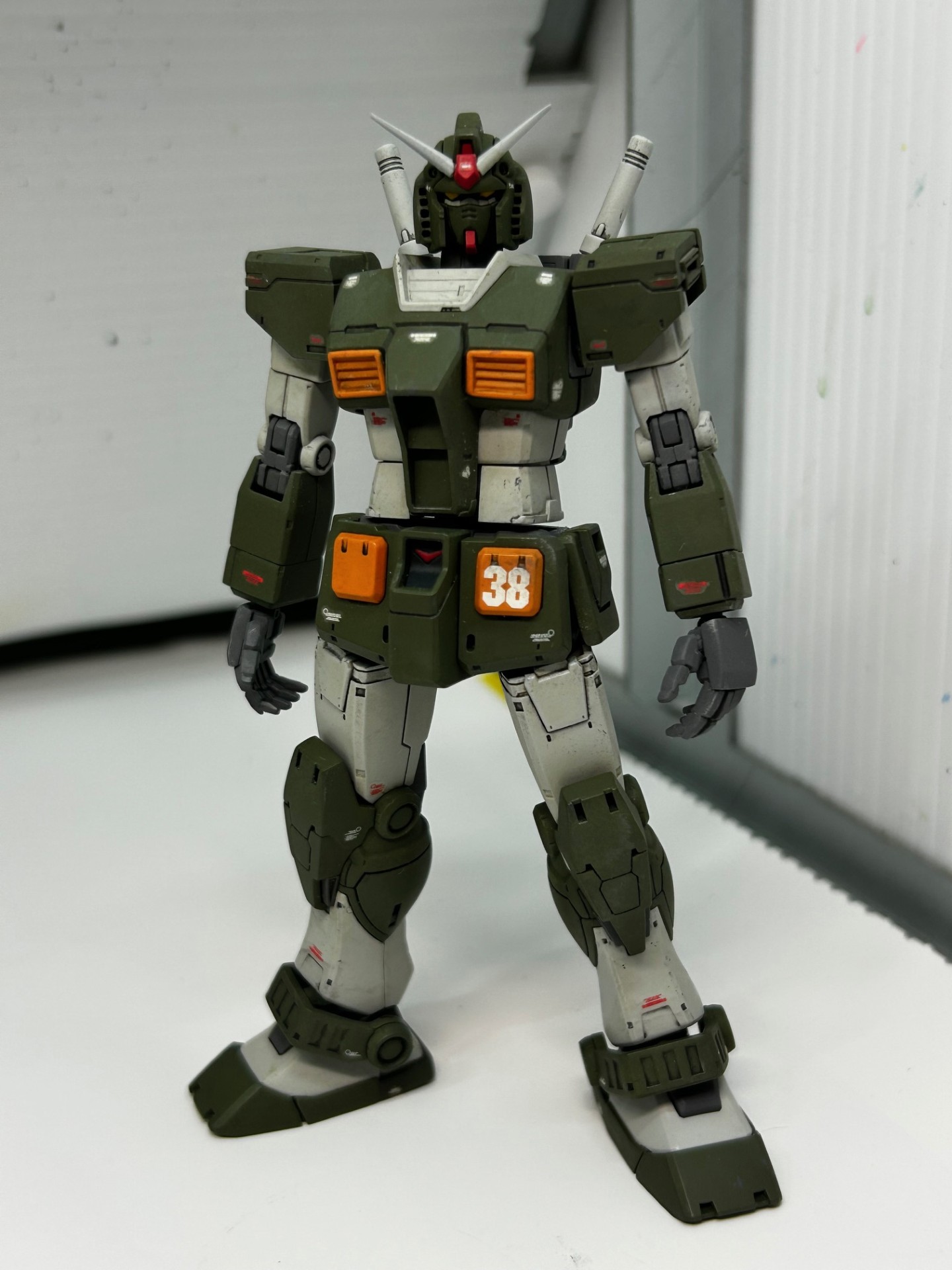 これはFAの装甲を外した状態です。キットのままだと基のオリジンガンダムのランナーの影響で腕が全部白くてノーズリーブみたいになるのですがプロトタイプガンダムの色の配置で塗りました。