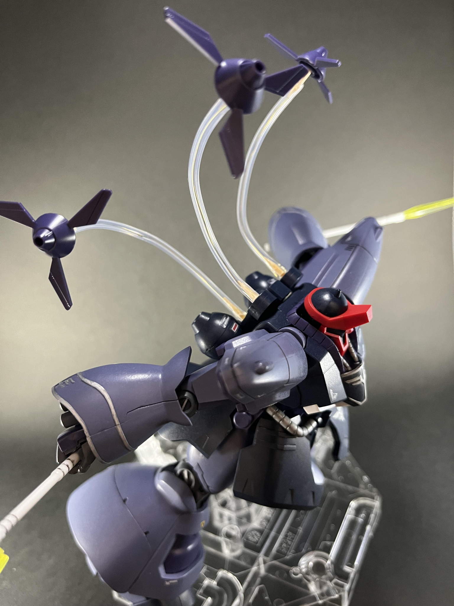 組立説明書に、「HGUCヤクト・ドーガなどに付属するクリア棒を使って射出状態を再現できます。」と書いているのですが、今は持ってないので、透明チューブ,真鍮線,つまようじで作りました💦