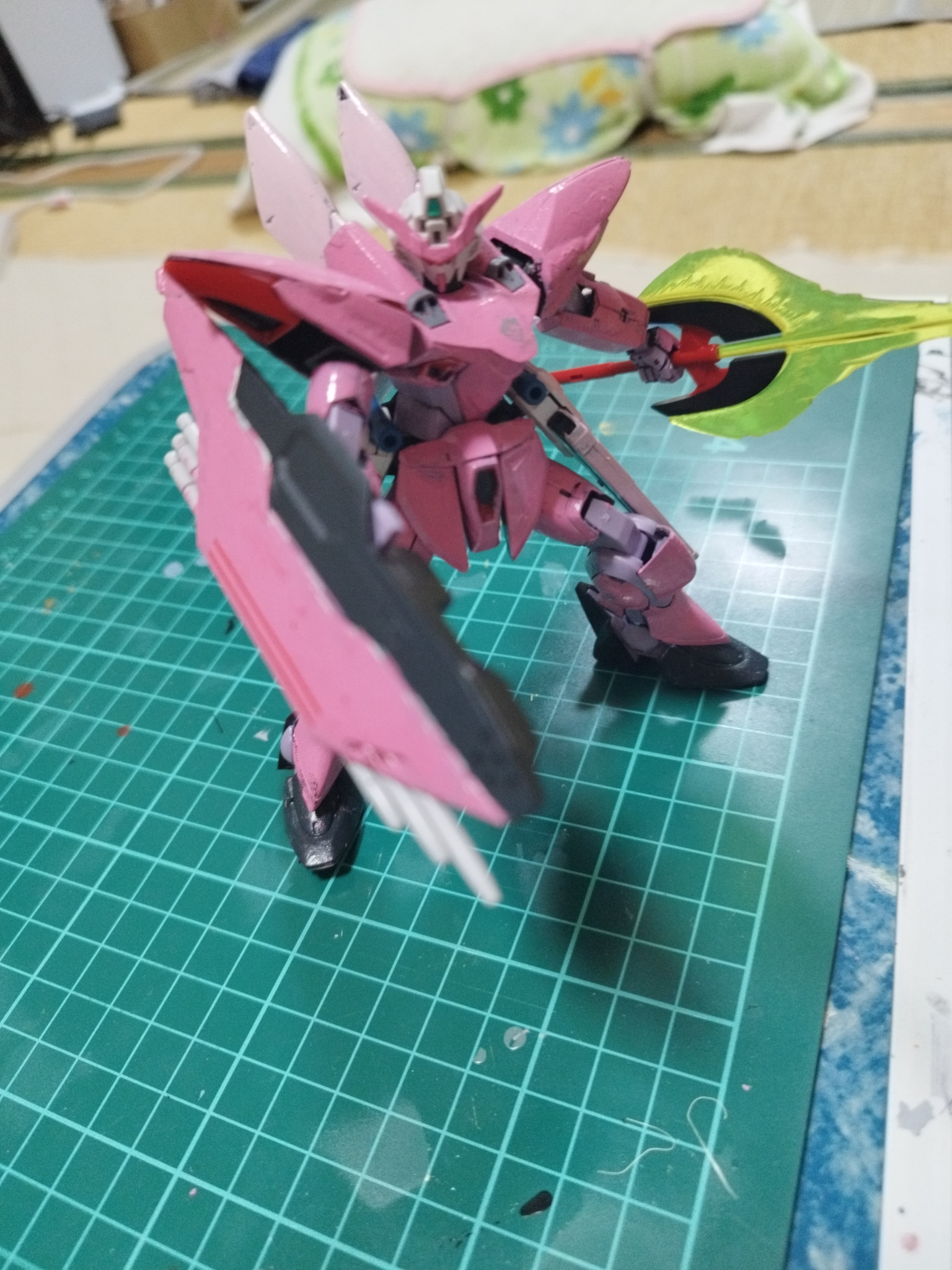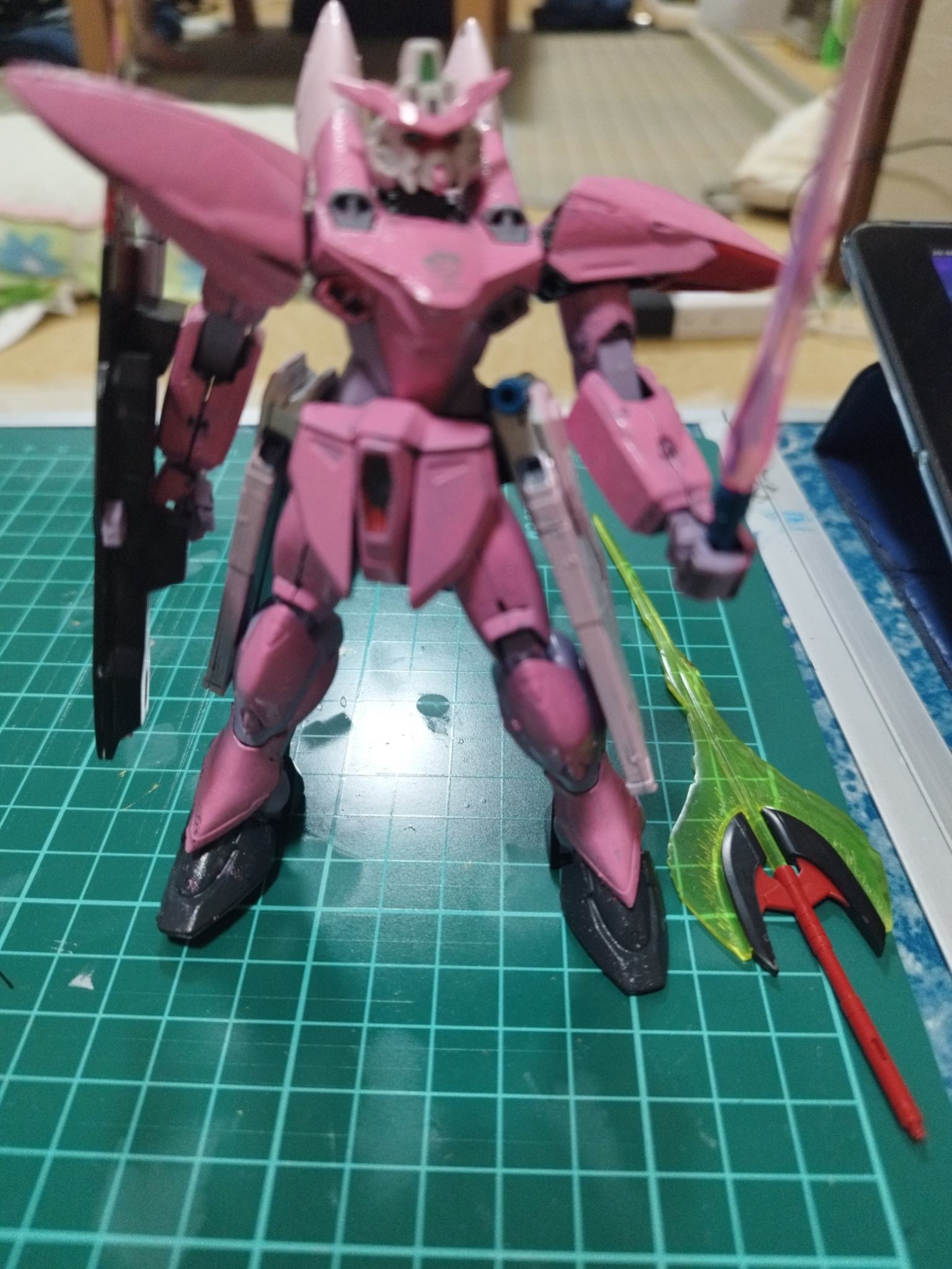色としてははくいこよりさんのピンク、黒、白ピンクを使い方塗装しました!初めてのホロックスの人の専用機を作りましたかなり配信などで拝見してたので作れて嬉しかったです