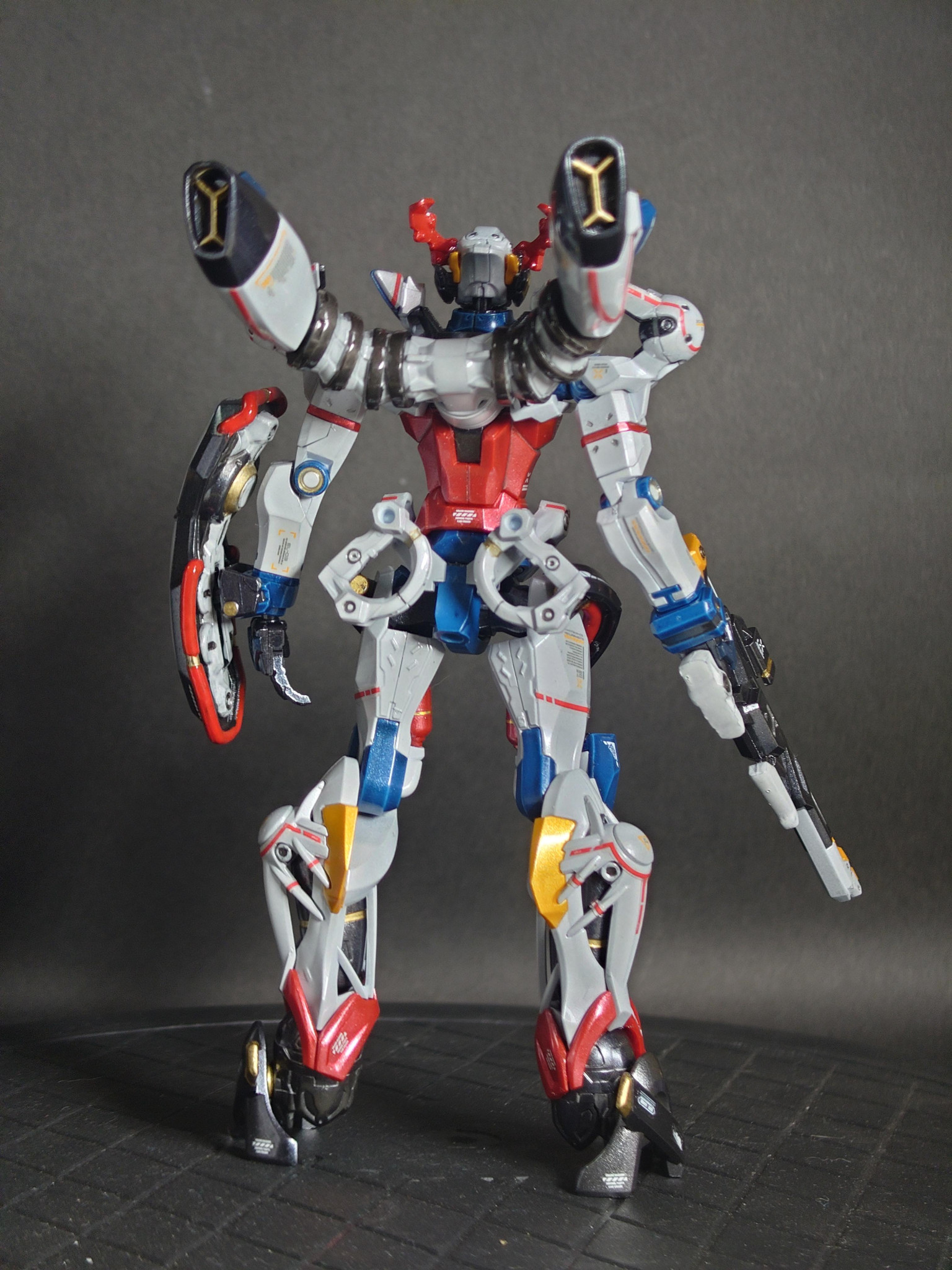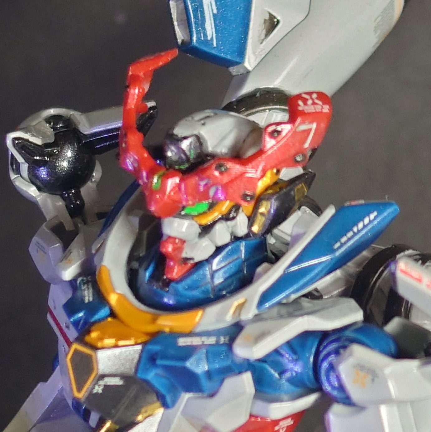 カラーリングはもっと赤と青を暗くしたかったんですが、下地をサボったせいで予定よりも明るめに(gundam-kao10)