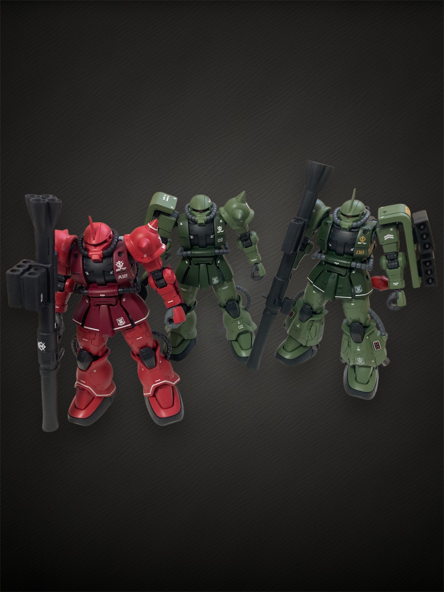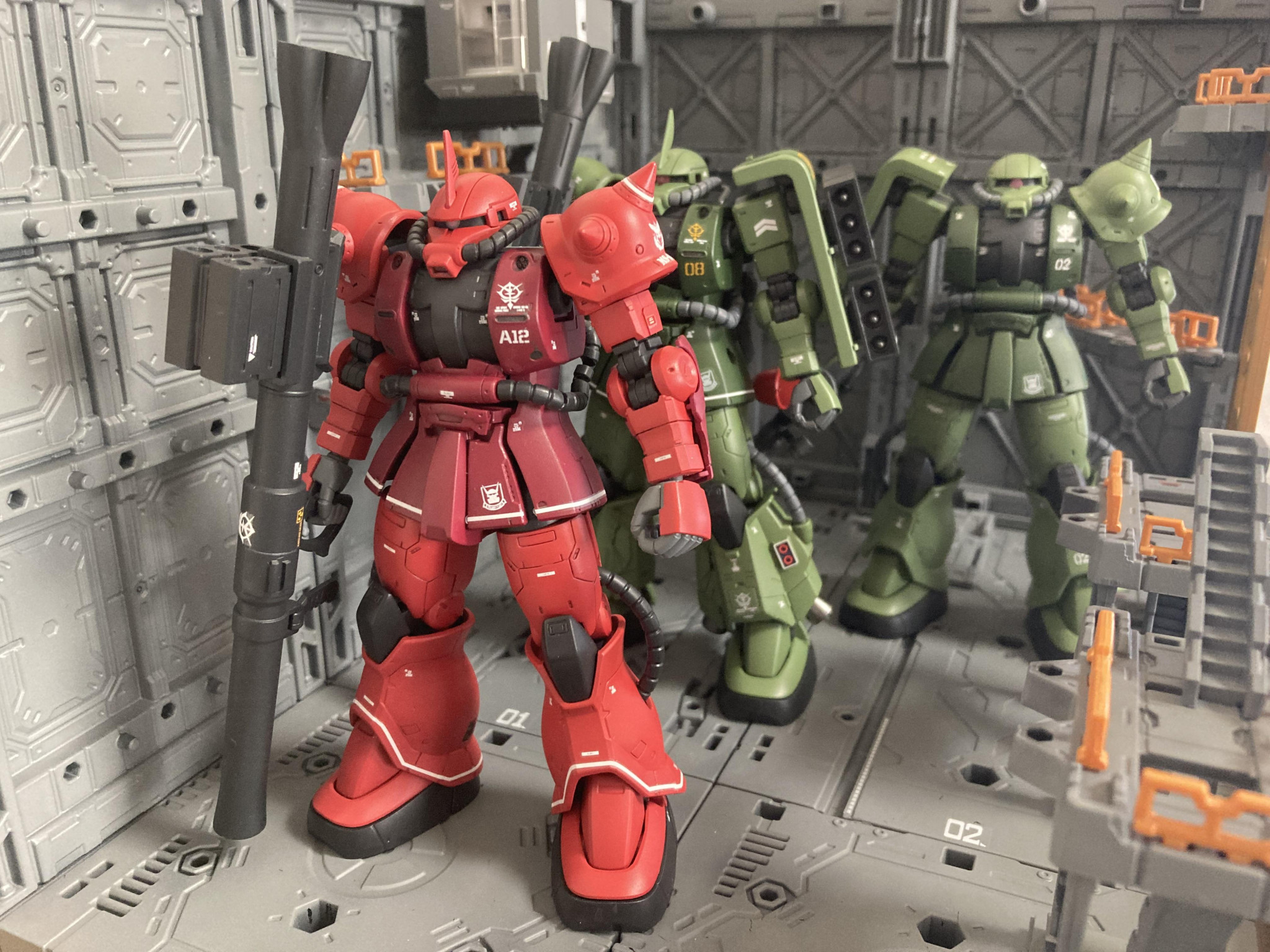 ここ最近ジムを連続で使っていたのでジオンMSを作りたくなり積んであったシャア専用ザクを量産型カラーにしてみました。