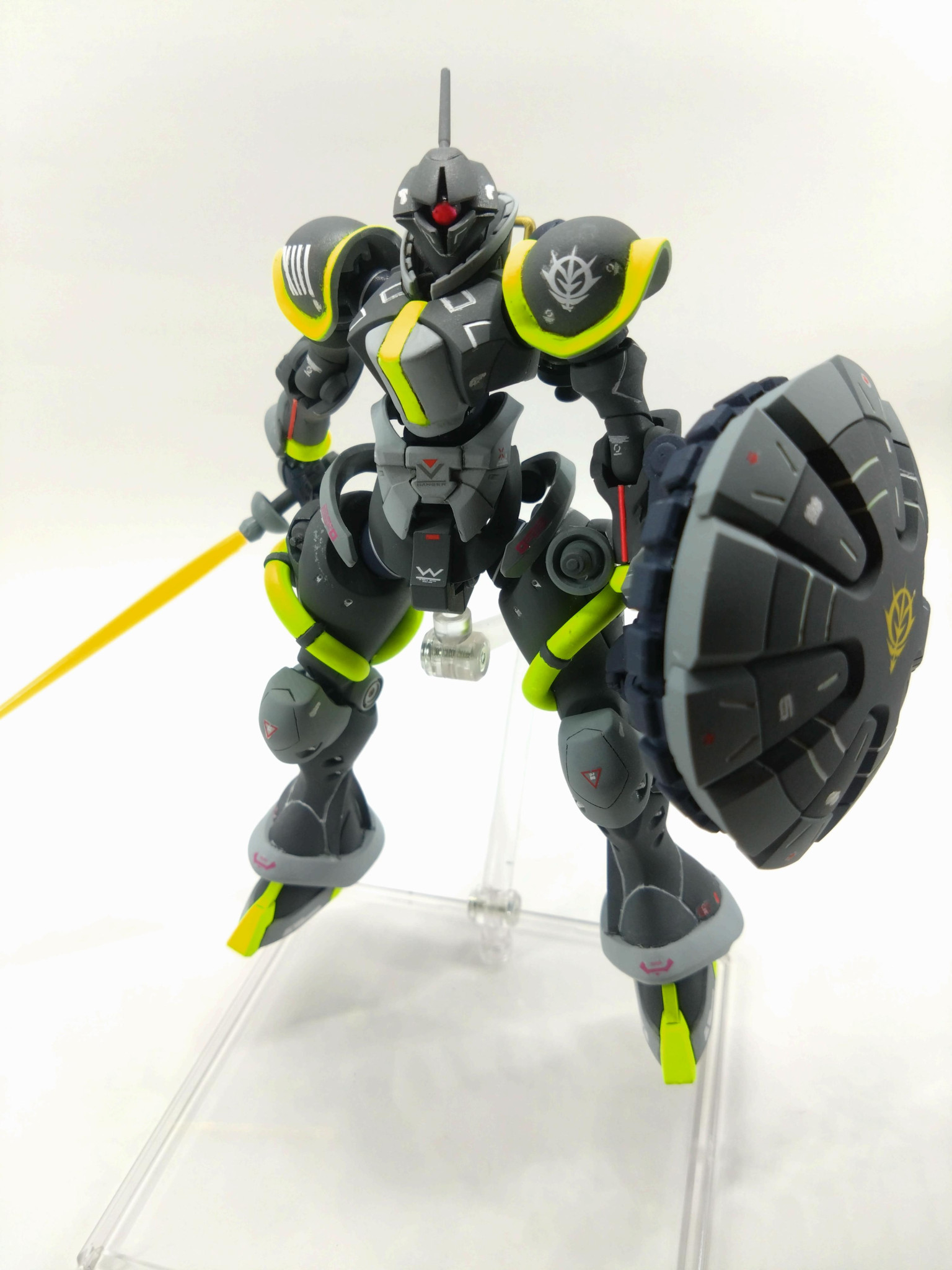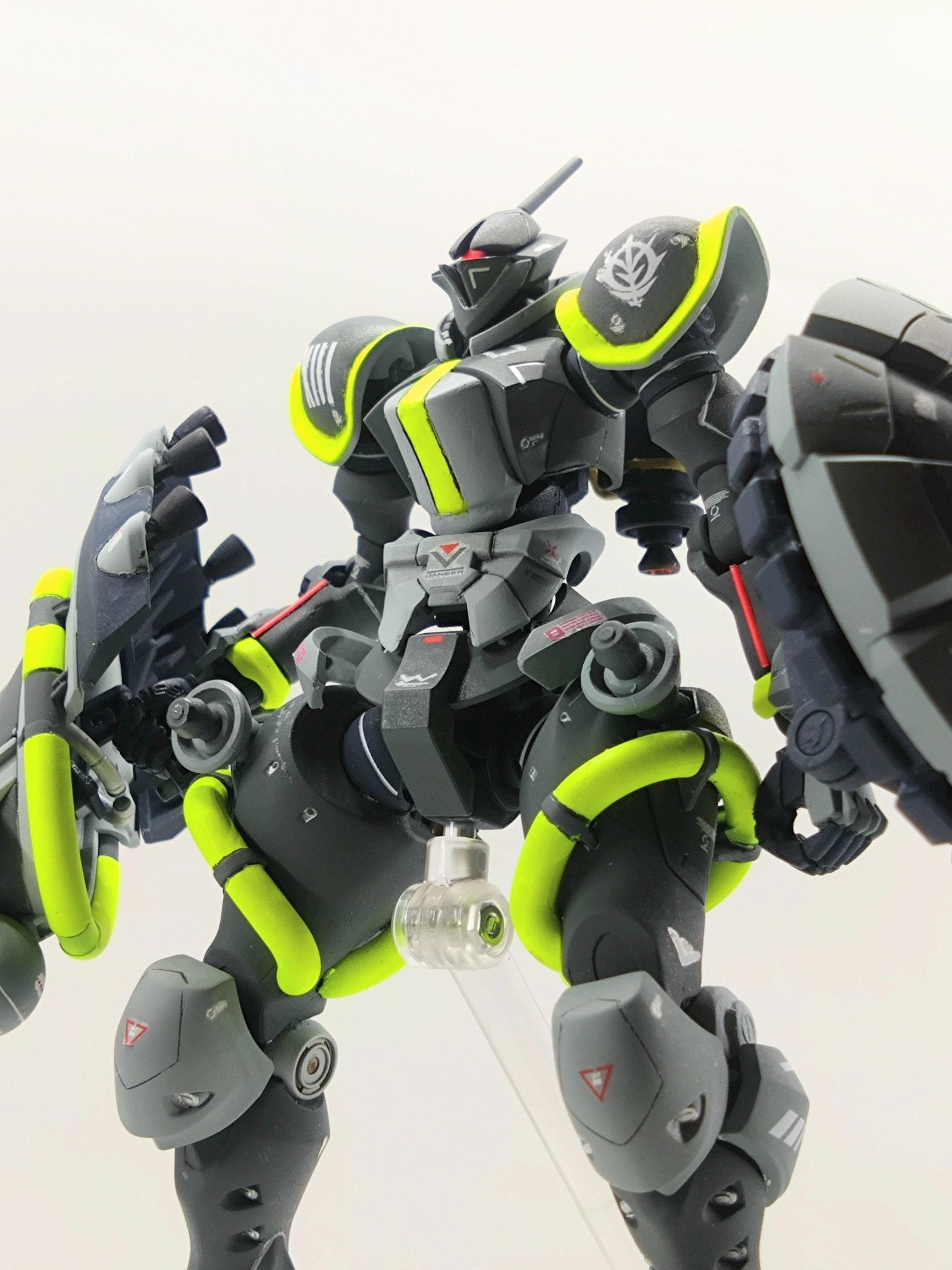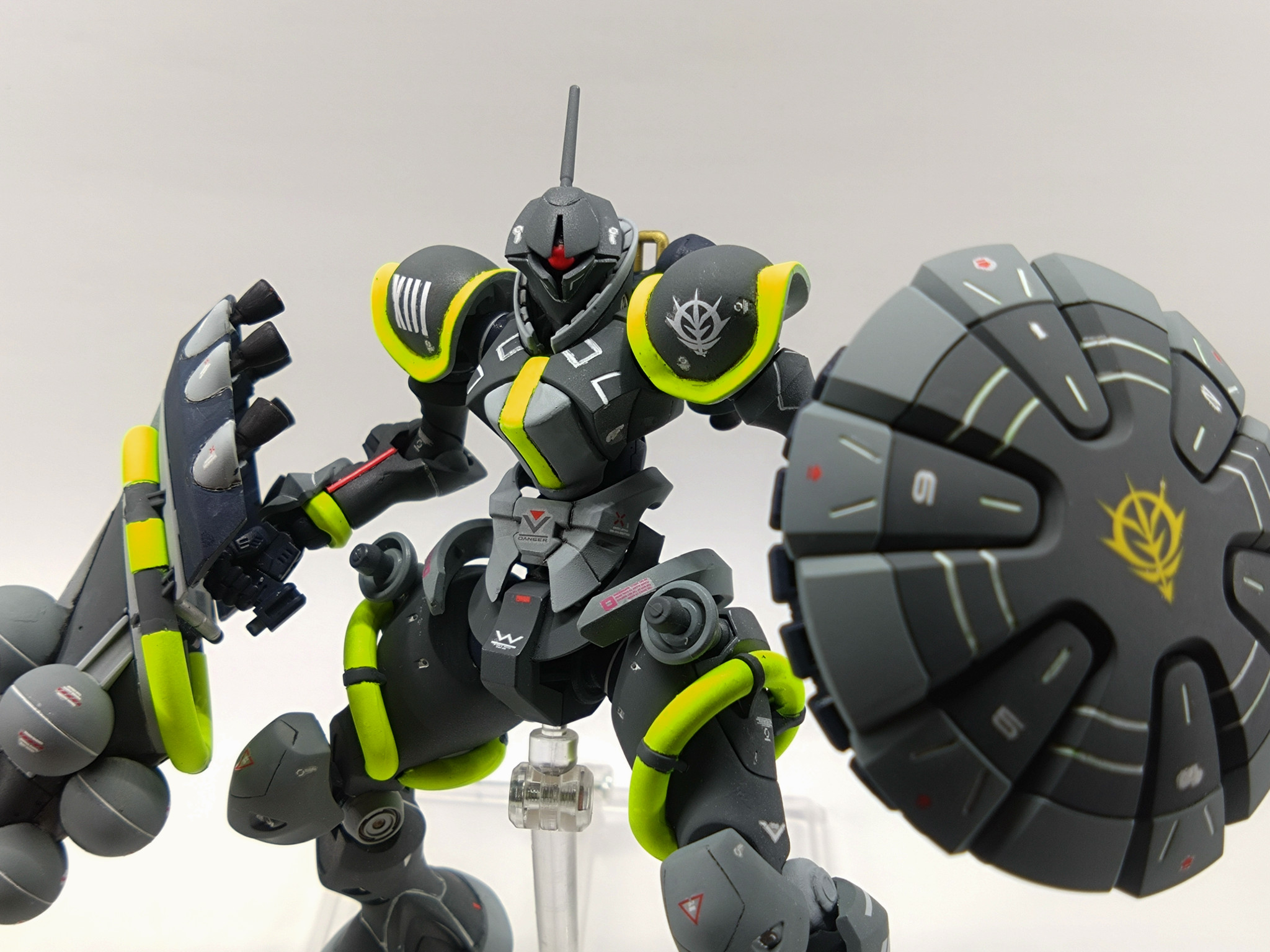 コメントありがとうございます!蛍光イエローは暗い色に映えるので気に入っています!完成後の第一印象は「夜にジョギングしてる人っぽいな⋯」でしたが(zaku-kao4)モノアイレールもお褒め頂きありがとうございます!