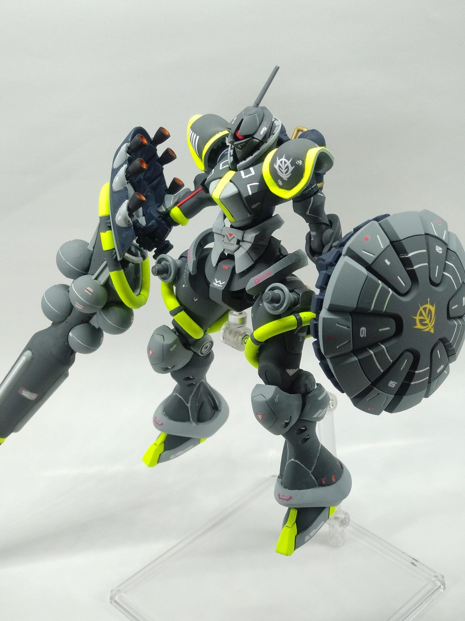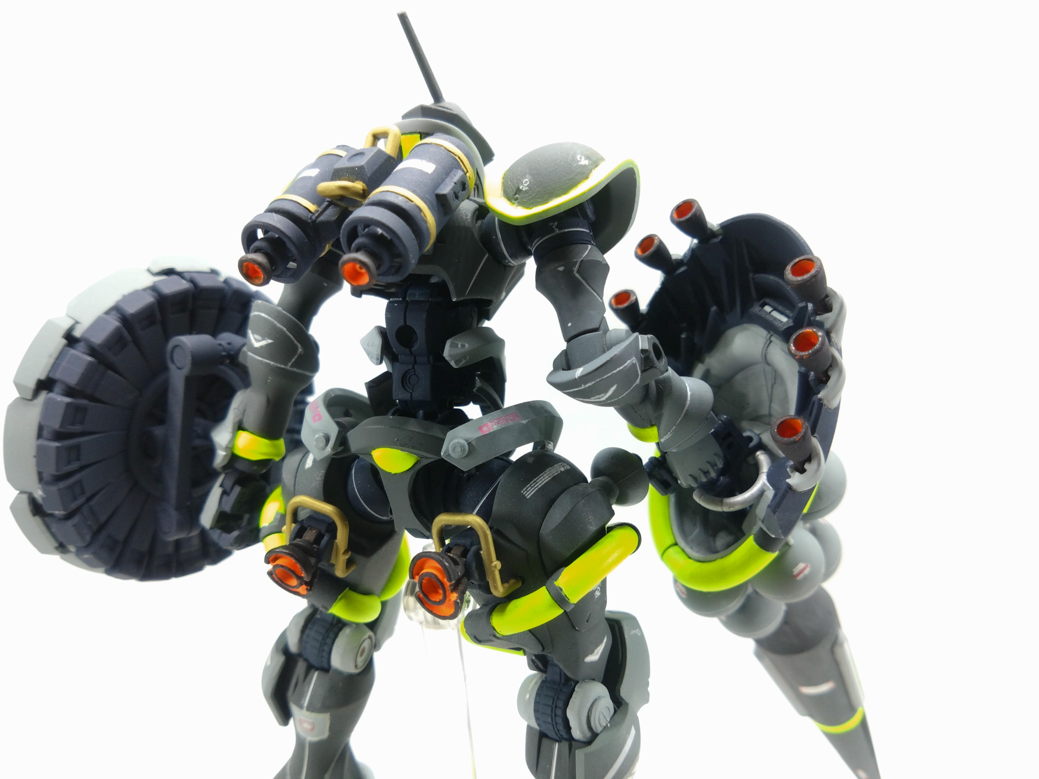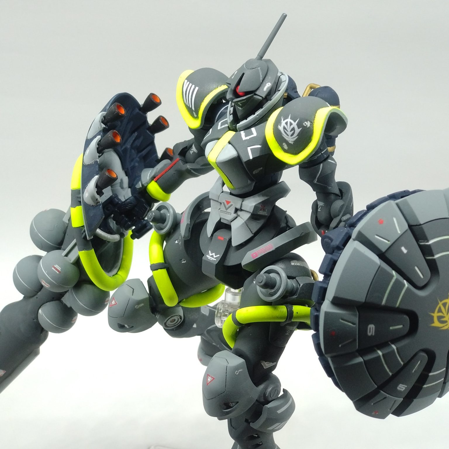コメントありがとうございます!蛍光イエローは暗い色に映えるので気に入っています!完成後の第一印象は「夜にジョギングしてる人っぽいな⋯」でしたが(zaku-kao4)モノアイレールもお褒め頂きありがとうございます!