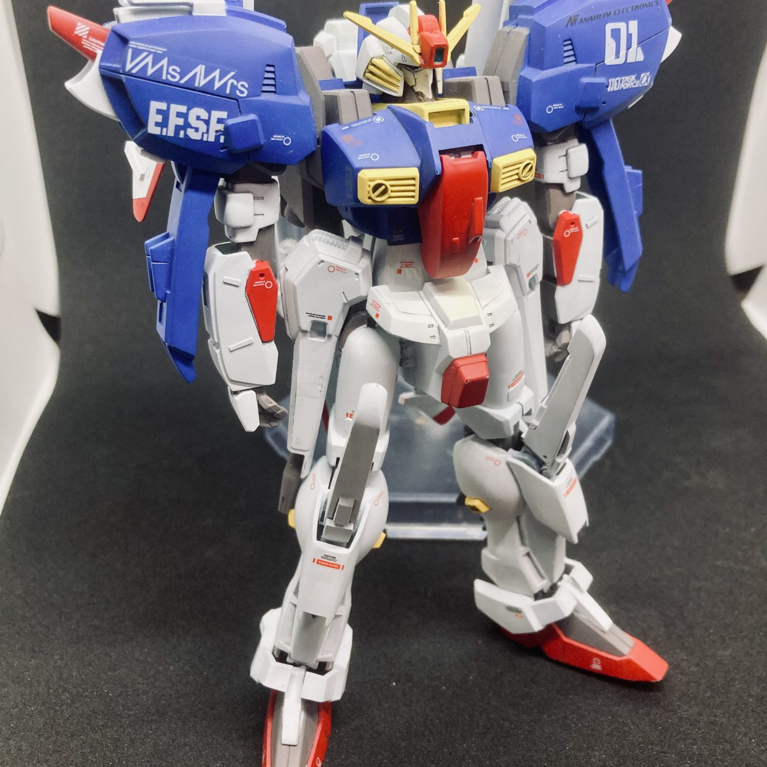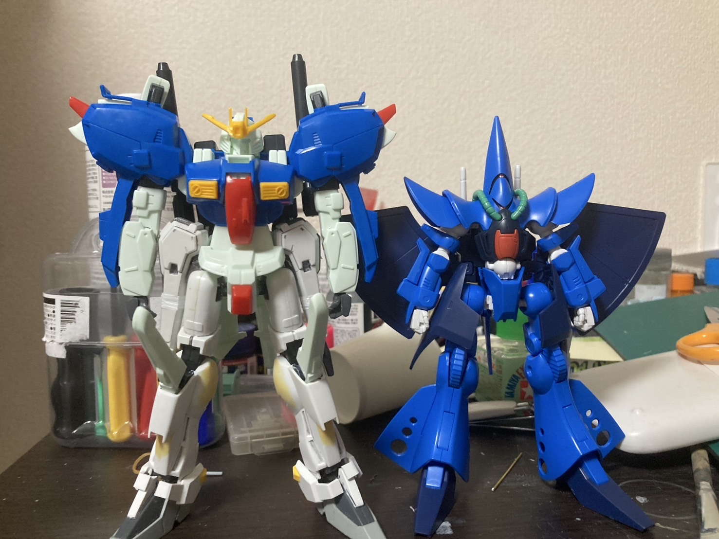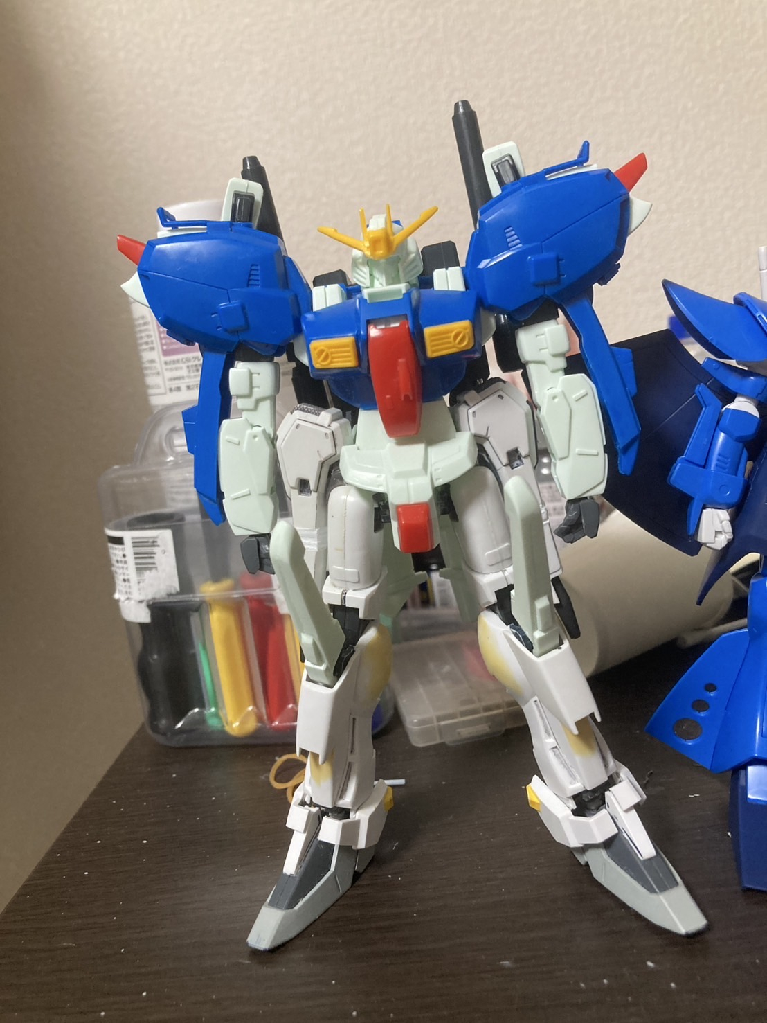 旧キットとhgのミキシングです。細かいディテール追加やプラ板工作は得意ではないのでプロポーションの変更で勝負です。塗装はセンチネルの頃の設定画を参考にしている為HGや現行キットで色が付いている箇所に色が付いていない場合がありますがミスじゃ(ないです)。