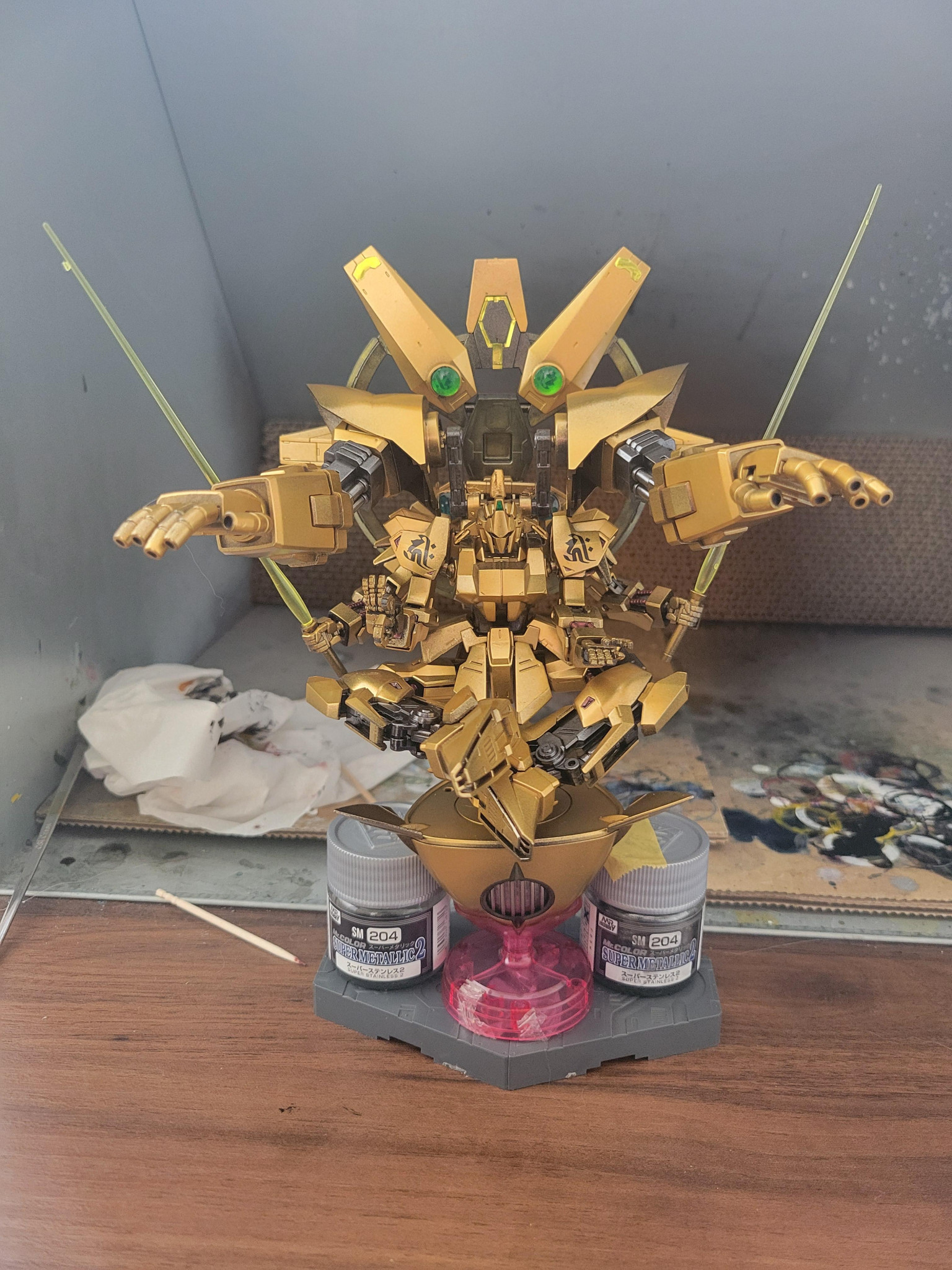PANDAMAN0… HG 2025.10/13更新 百式観音チンターマニチャクラ 328 77 いいねしたモデラー(77) 8 0 作品を共有 ガンスタに登録して今月で1年になります。 初投稿が千手観音をモチーフにした百式観音キリークだったので、1周年記念に如意輪観音をモチーフにした百式観音チンターマニチャクラを作りました😆 如意輪観音の梵字は千手観音の梵字と同じキリークで肩にデカールを貼ってあります。いつも、いいねして下さる方ありがとうございますm(_ _)m2周年目指して、まったりガンプラライフを楽しみたいと思います😆 コメント コメントをして応援しよう コメントにはログインが必要です Yorozuya Cherno 3週間前 これがクワトロのオーバーソウル・・・ PANDAMAN01 3週間前 コメントありがとうございます😄甲縛式オーバーソウルで本体の中にクワトロがおります笑 福狼。 3週間前 クワトロが…シャアが悟りを開いた!?(zaku-kao10) PANDAMAN01 3週間前 コメントありがとうございます!実はガンプラバトルの世界のイメージで作ったのですが悟りを開いたシャアというのも面白いですね😆 okinasan 3週間前 ナ、ナンマンダー!蓮の花のファンネルといい凝ってますなあ^_^ PANDAMAN01 3週間前 コメントありがとうございます😄 ファルシアの台座とファンネルが合うなーと使ってみました! とし 3週間前 こんにちは、としです😊 願いを叶える6本腕の観音様!素敵です! 怖さより安らかさを感じます! PANDAMAN01 3週間前 コメントありがとうございます😄 観音様好きなので、そう言って頂けると嬉しいです! PANDAMAN01 2024年から、ガンプラ作り再燃🔥 加工技術は無くて塗装して仕上げるだけです😅 完成品の備忘録として登録してみました。 PANDAMAN01さんがお薦めする作品 百式観音キリーク 百式観音チンターマニチャクラ 3 天舞宝輪!! 百式観音チンターマニチャクラの必殺技を紹介!! 9 パーフェクト風ガンダム 武装を追加したヘビーアームズを成形色仕上げで完成させる予定で… 3 ヘビーアームズラピッドファイア(仮) ヘビーアームズの借組が終わりました。塗装する予定でしたが素組… 2 閑古休題。 抽選に当選していたミクざくを回収しに初めて千歳のガンダムベー… PANDAMAN0…さんのページ この作品をお薦め作品に設定する Please login to update your profile! Please login to update your profile! Please login to update your profile! Please login to update your profile!