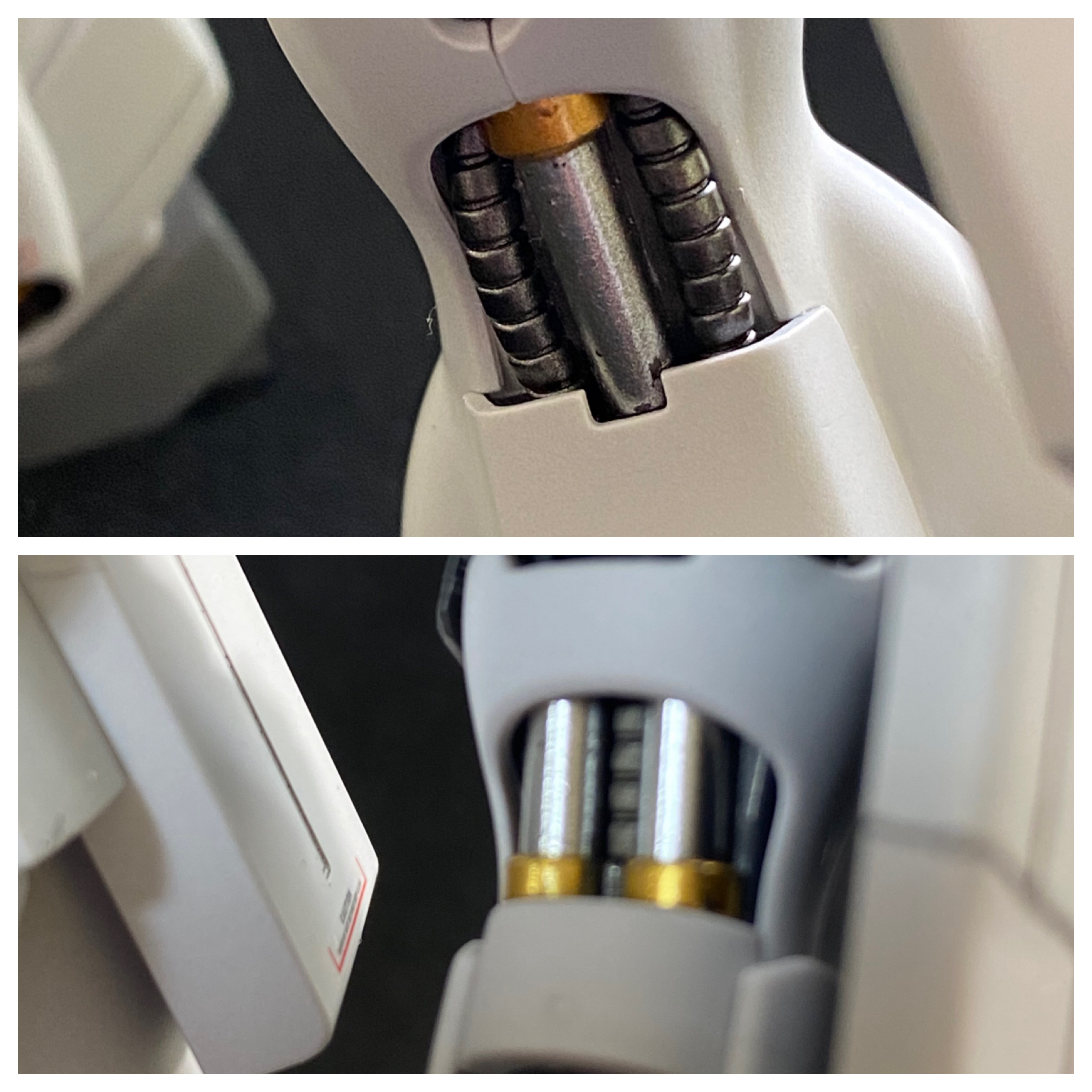 脚、腕部のシリンダは、メタリック、ゴールド、シルバー系の3色で色分け。