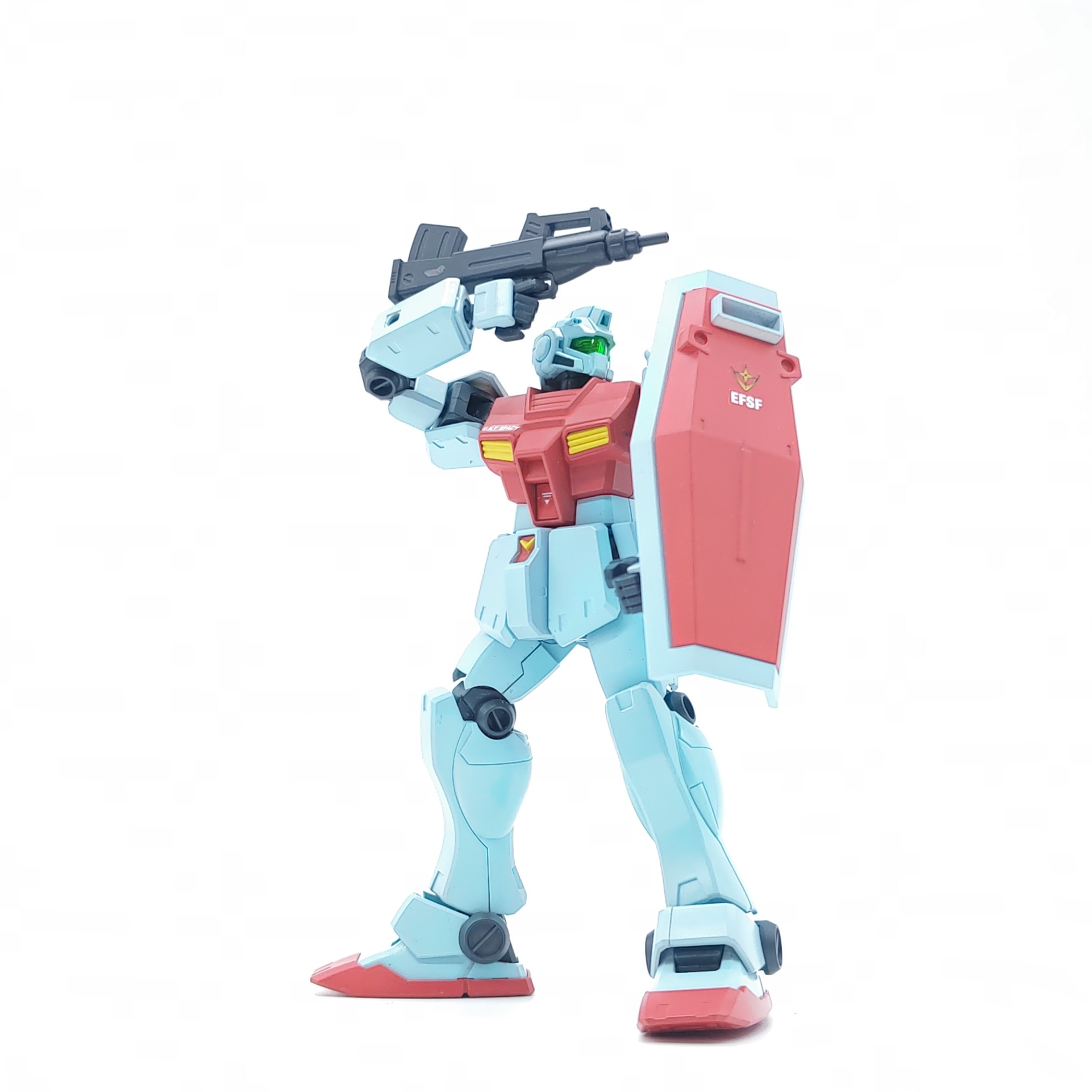 2010年8月発売(HGUC113)でパワード・ジム、ジム・クゥエルよりも結構後に発売されており、パワード・ジムからハンドパーツが追加されています。武装は2種類ですが、ビームサーベルのクリアパーツが付属しません。しかしいつものビームサーベルの刃をハメるための穴は開いているので適当なものをさせます。
