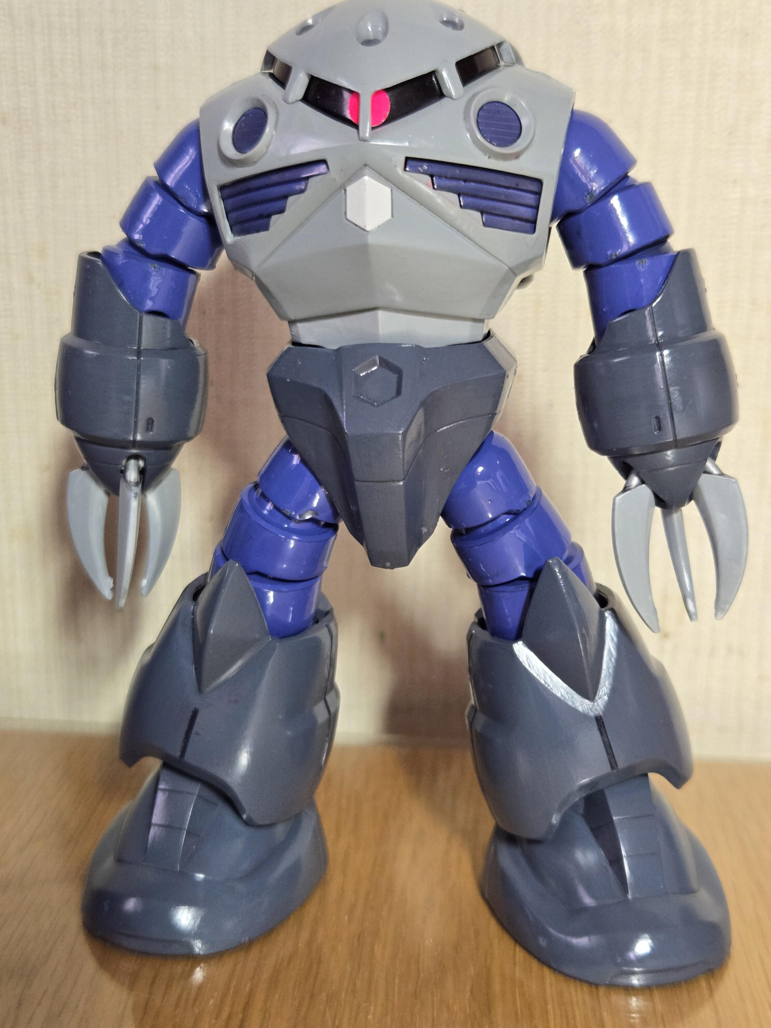 サイドビュー。モノアイは本来白っぽいですけれど、蛍光ピンクにしました。