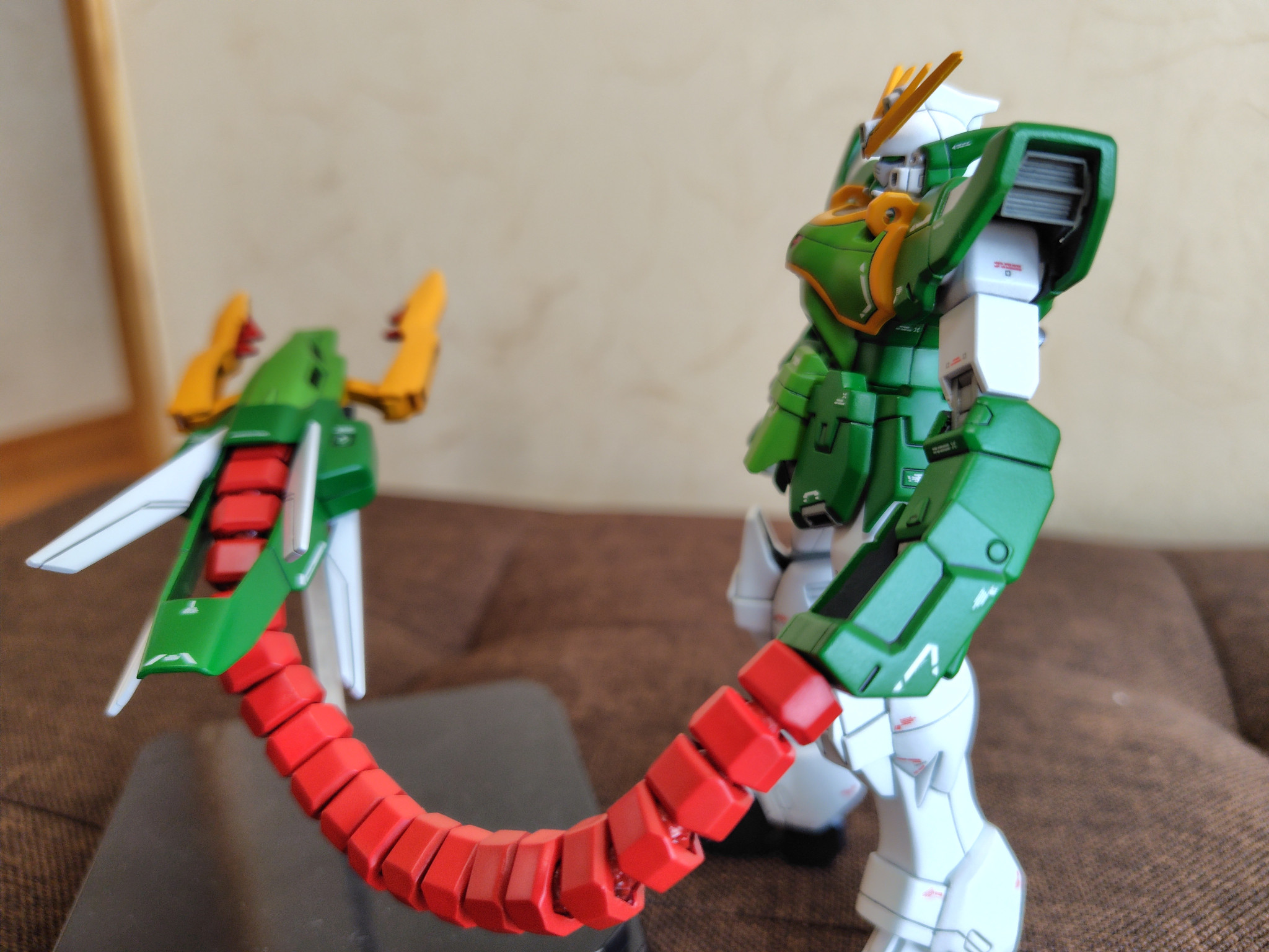 ドラゴンファングを出す時に腕アーマーが回転しますが、HGは回転起点が違う為に手首を外さないと回転出来ないので、設定どうりの回転起点に改造。