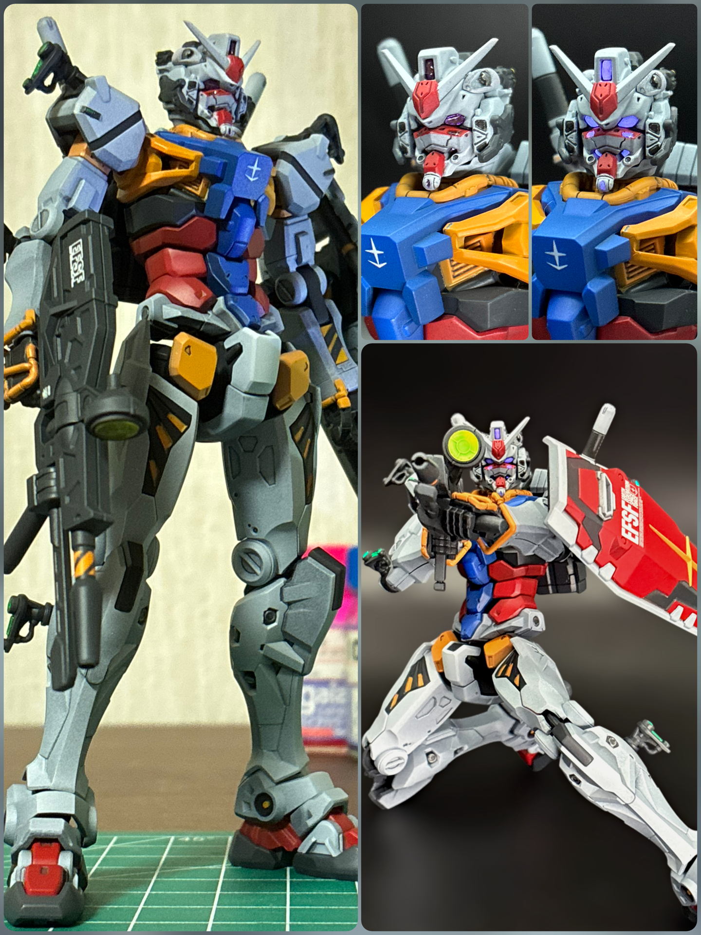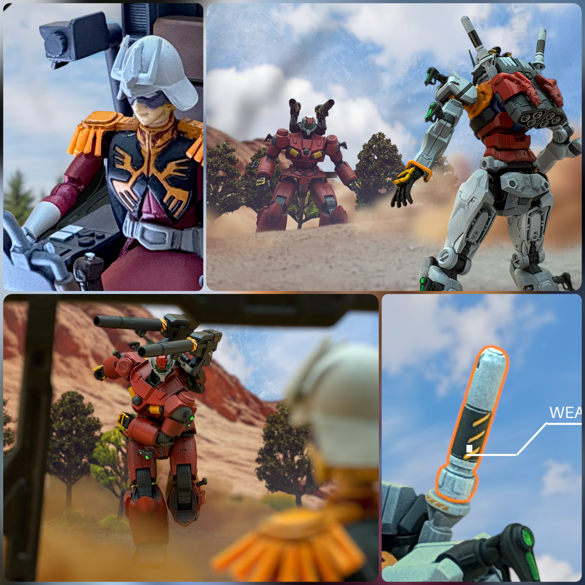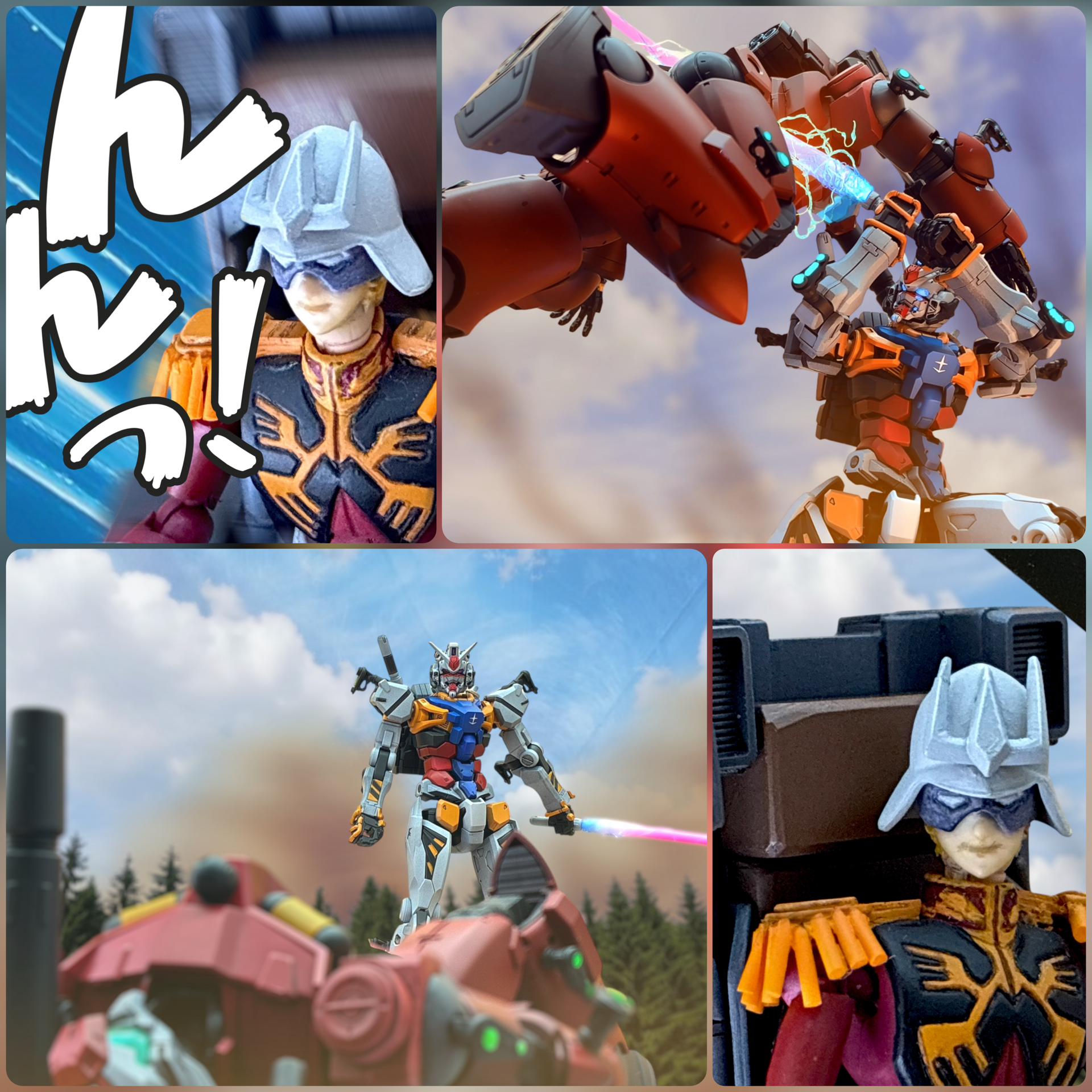 ガンダムは最近発売された白いガンダムではなく、赤いガンダムを塗装したものです。真っ白な顔は人相が悪すぎると感じたので、顔のカラーパターンはヒロイックな1stのパターンにアレンジしてみました😃