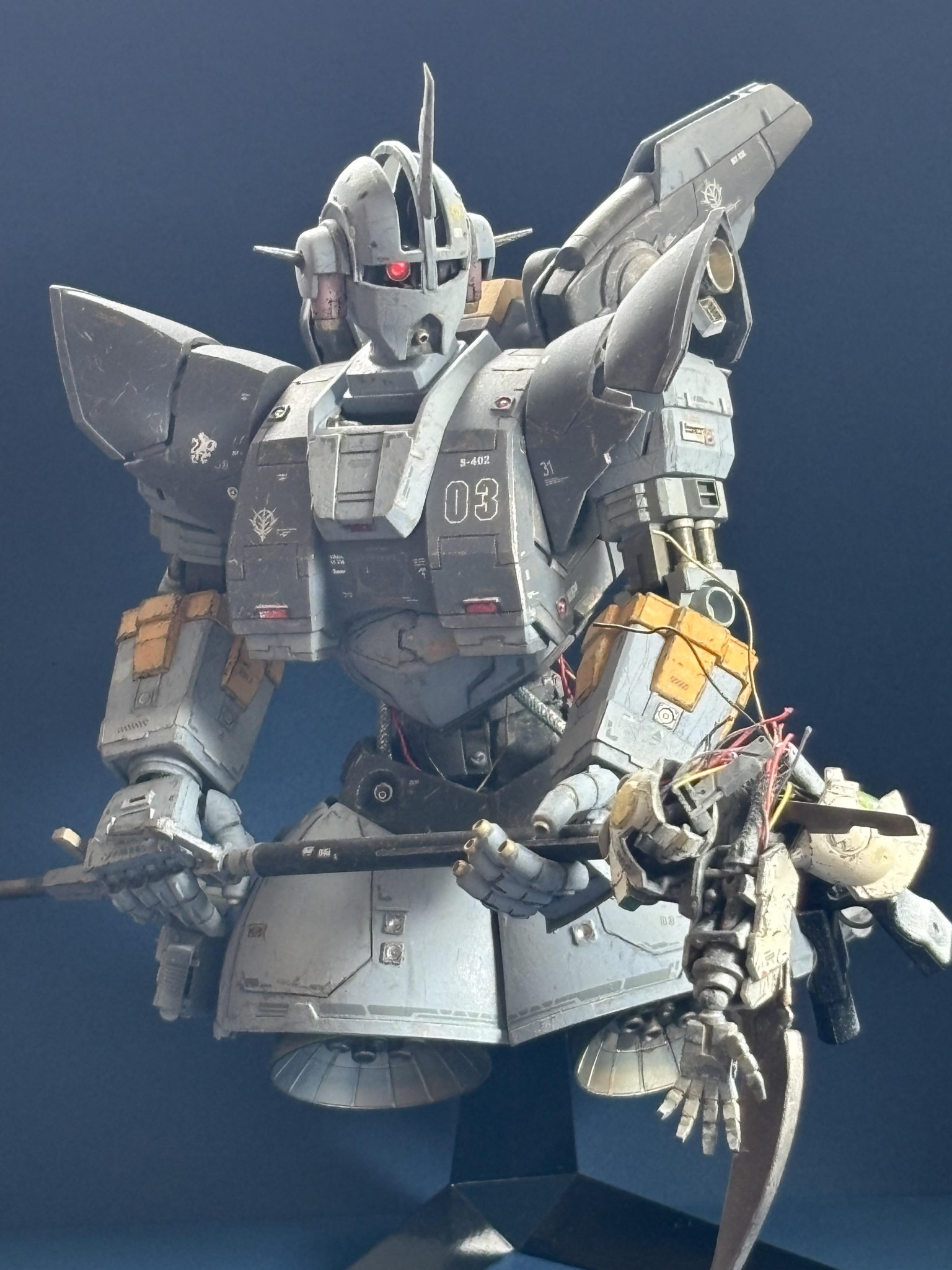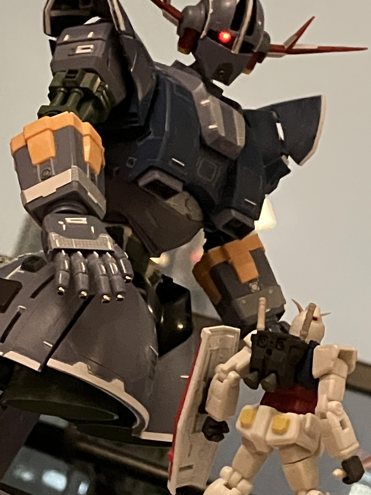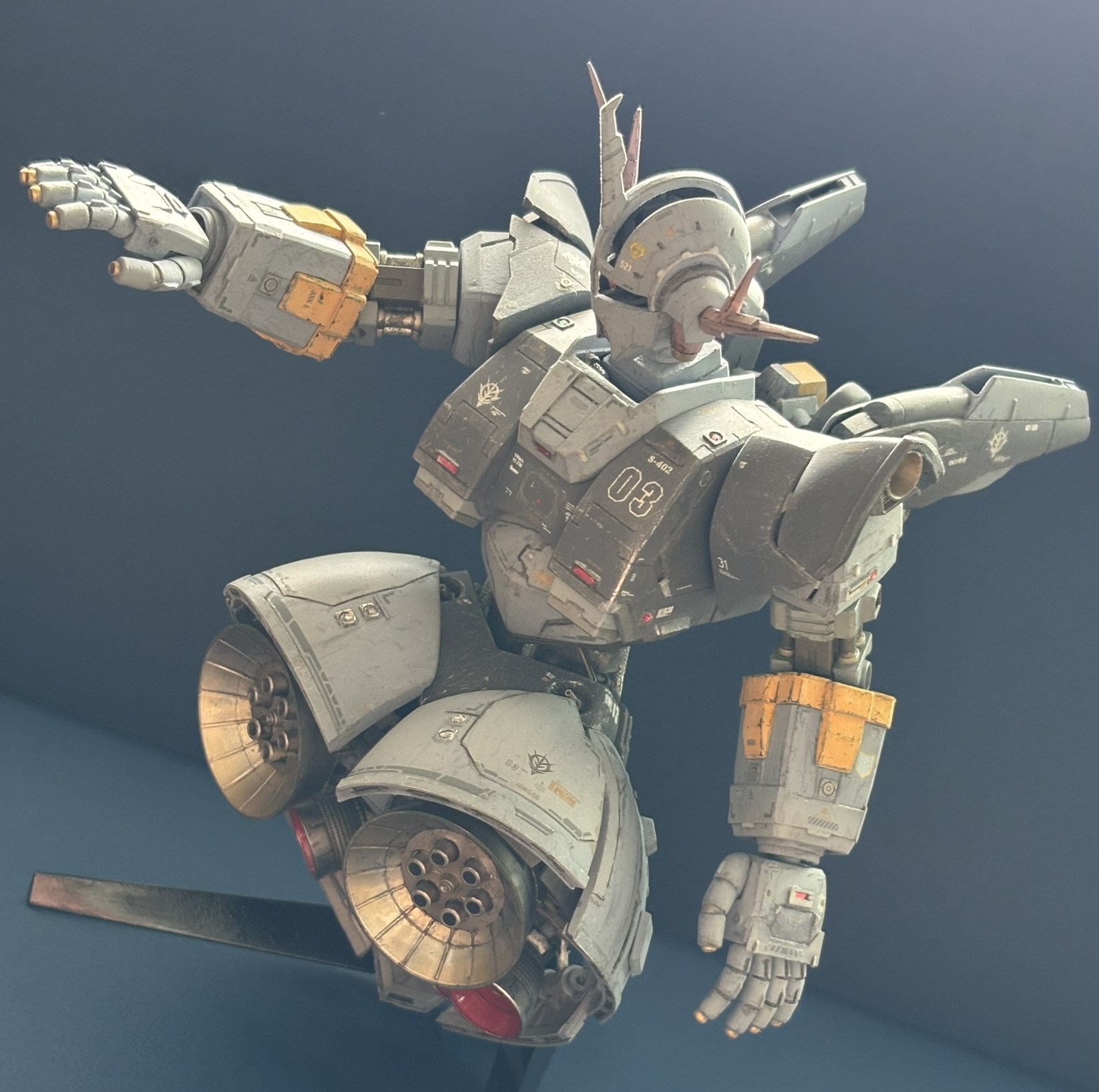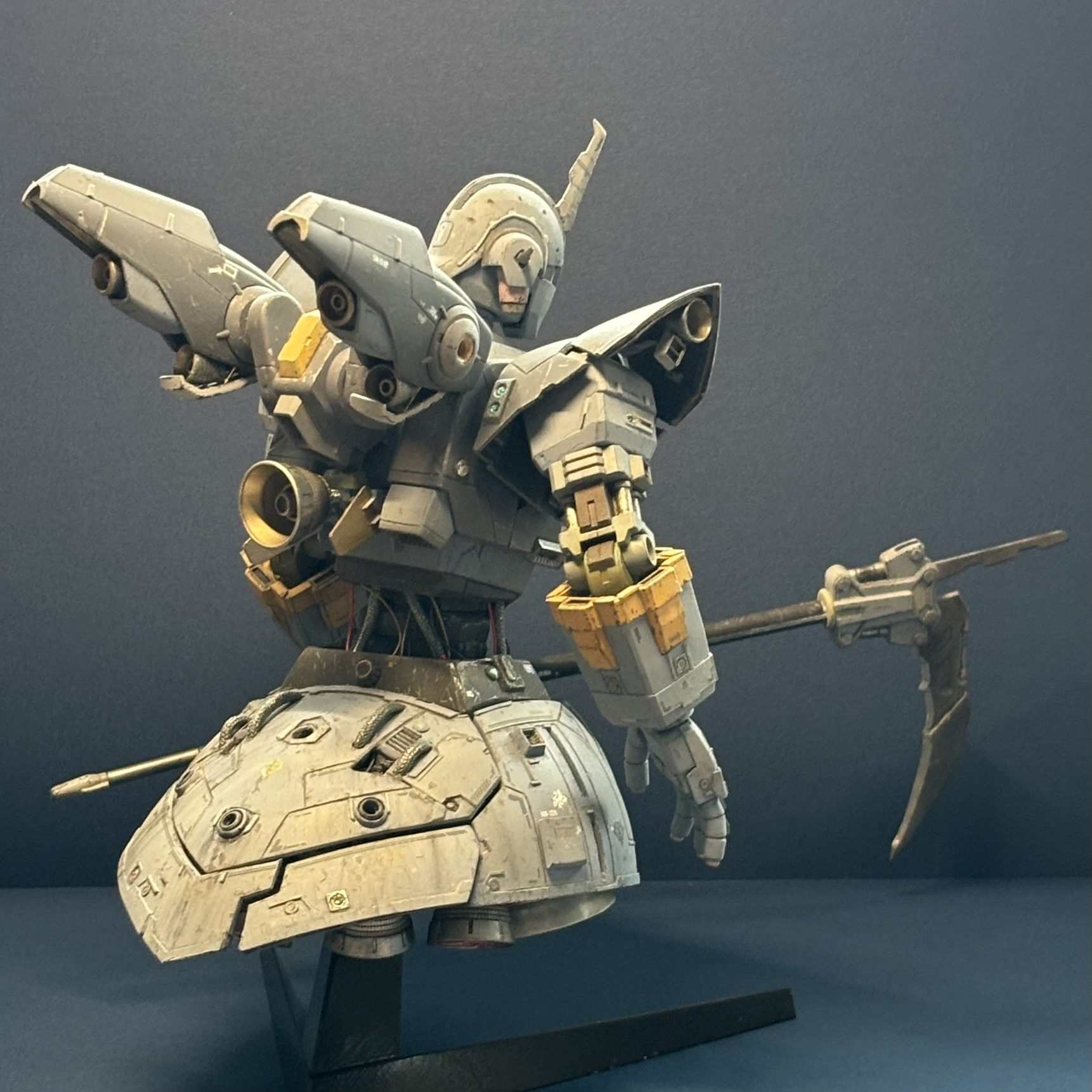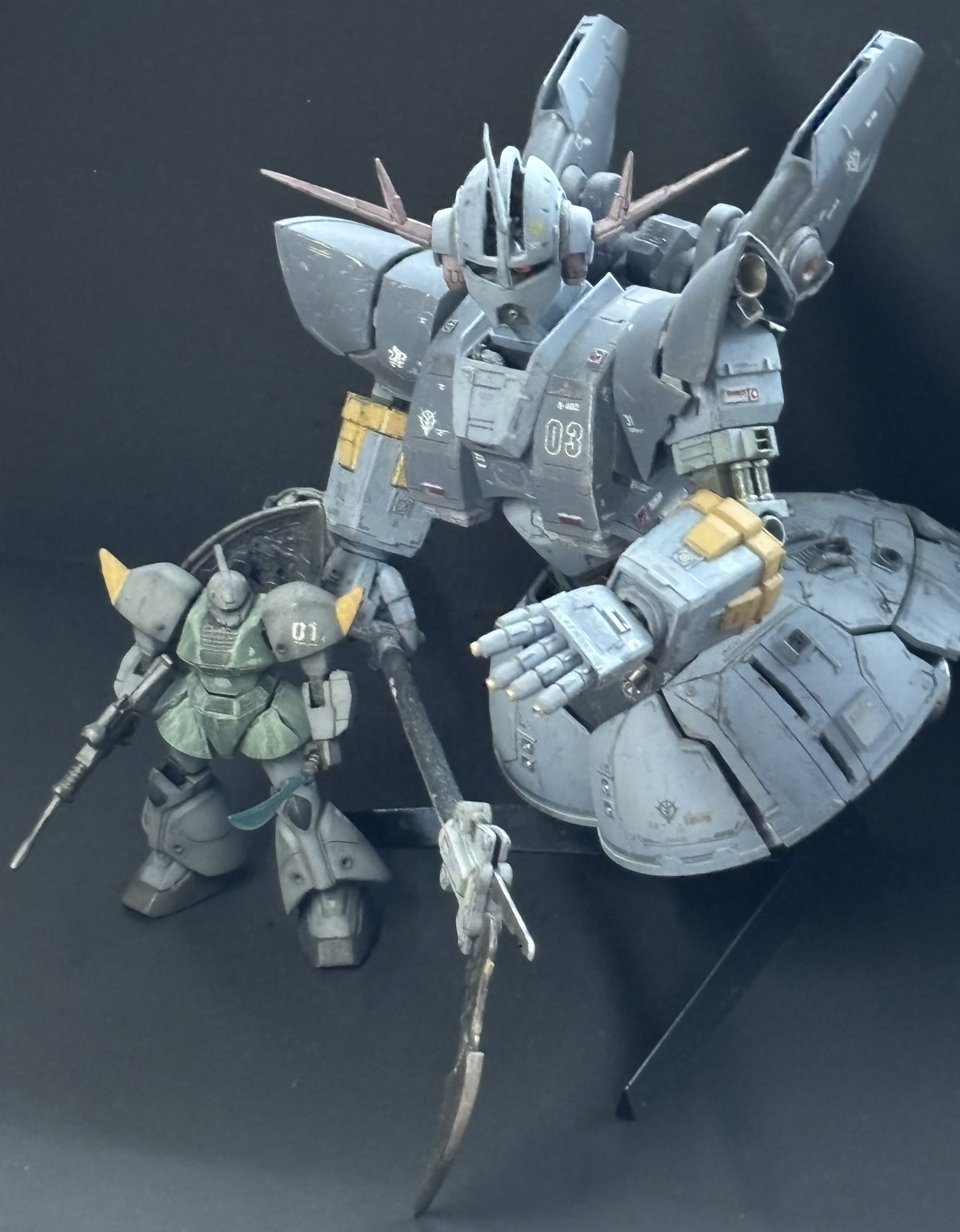 ゲルグクはHMSをベースに関節の付け替えやスカートの分割可動などを改造しています。1/220スケールなので1/144ジオングが1.5倍化したように見えます。そのくらいにデカいのですキリッ