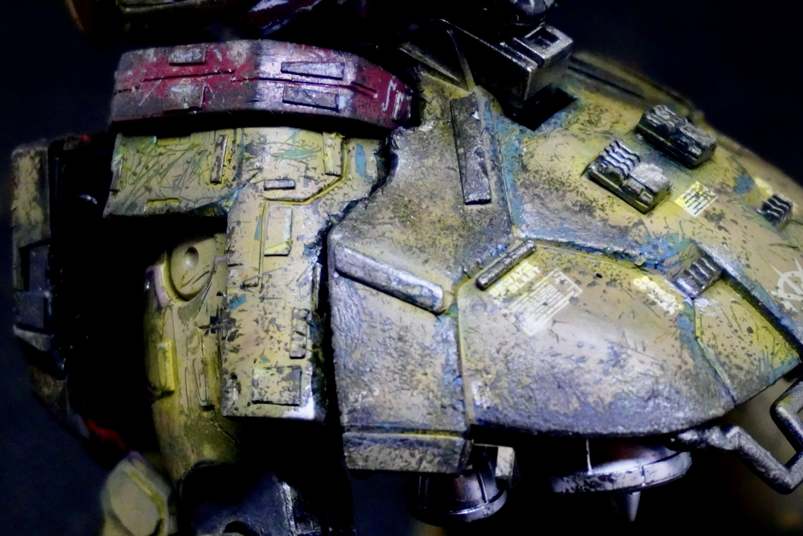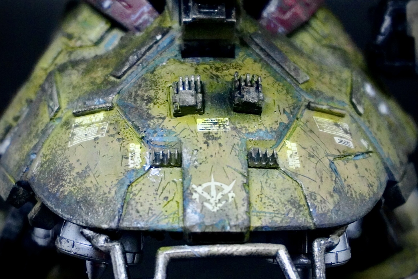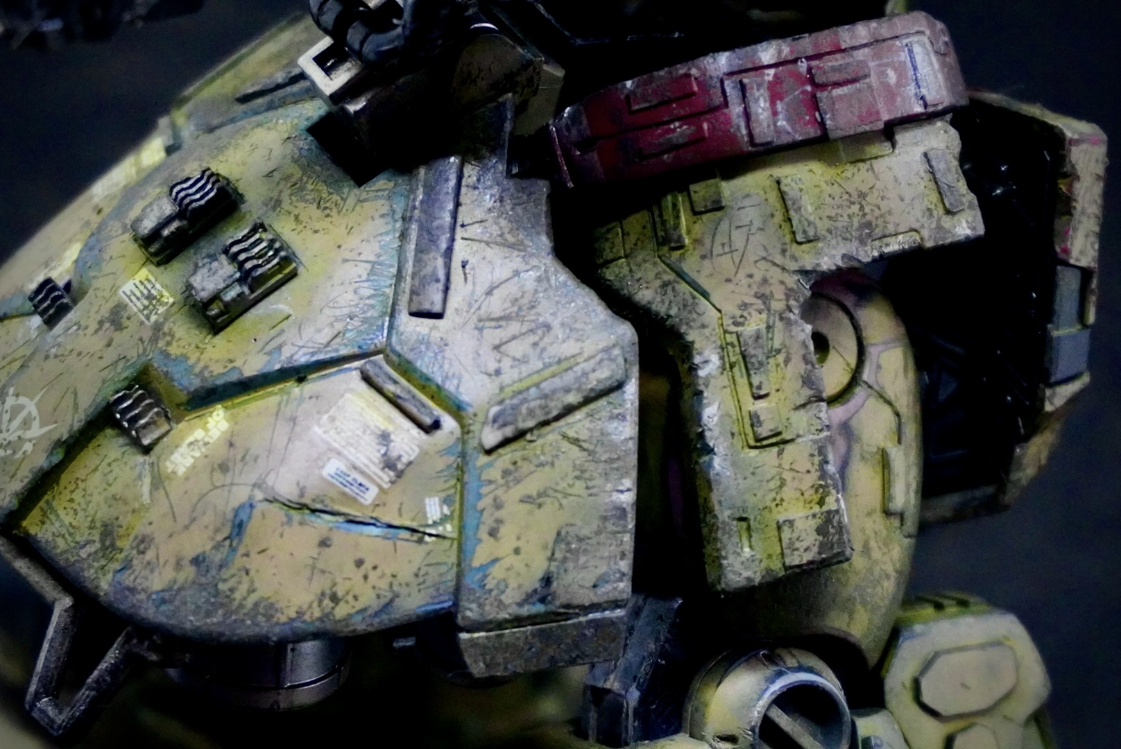 とはいえ、これも習作のつもりで。最初は剥げチョロチッピング…のつもりがやってるうちに楽しくなり、リアルなミリタリ系の汚れというよりはファンタジー系の偽リアルな汚れ、剥がれになりました。